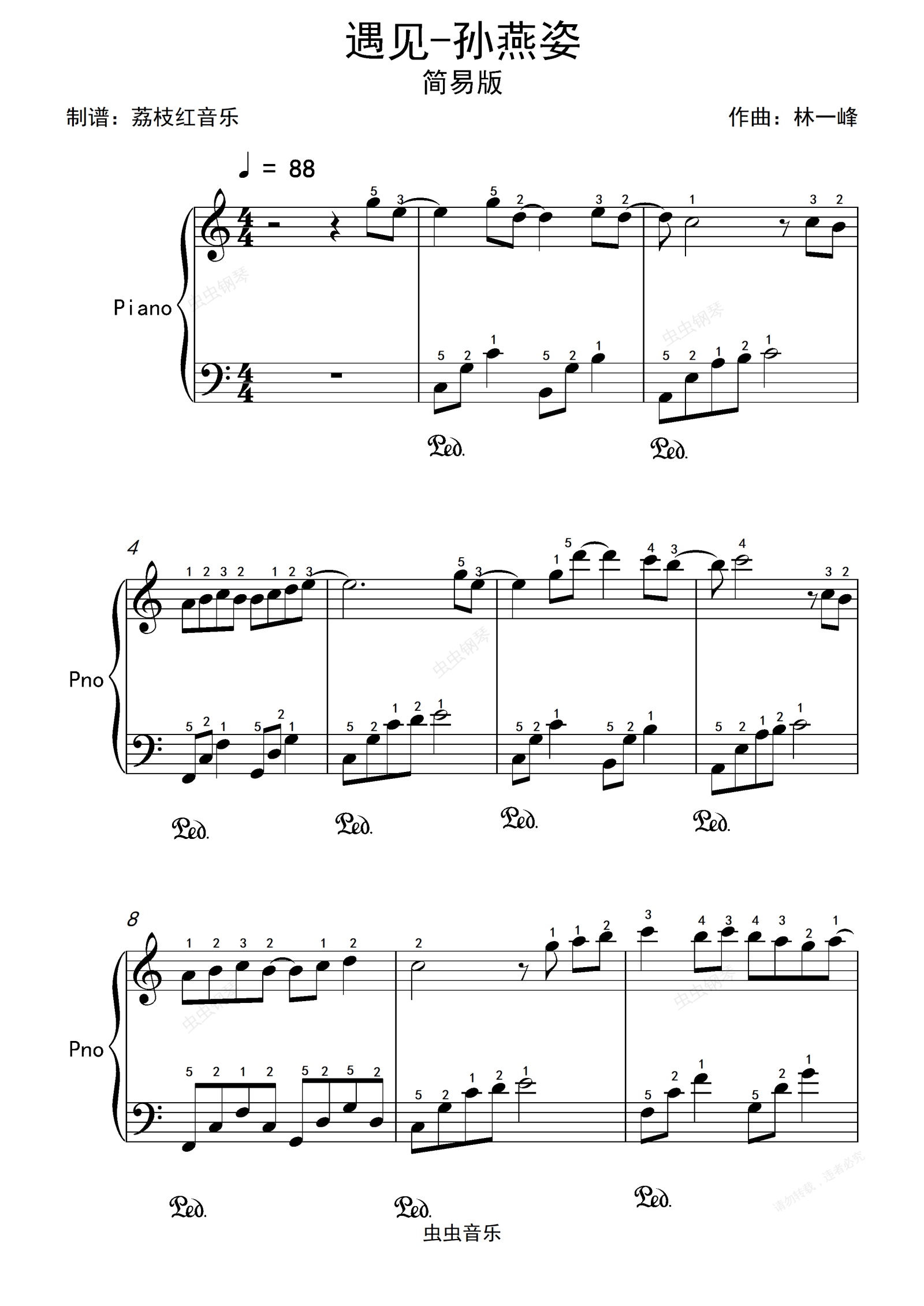 钢琴谱:好听!好听!遇见(简单版)孙燕姿C大调钢琴谱 高清谱+指法+踏板+示范音频