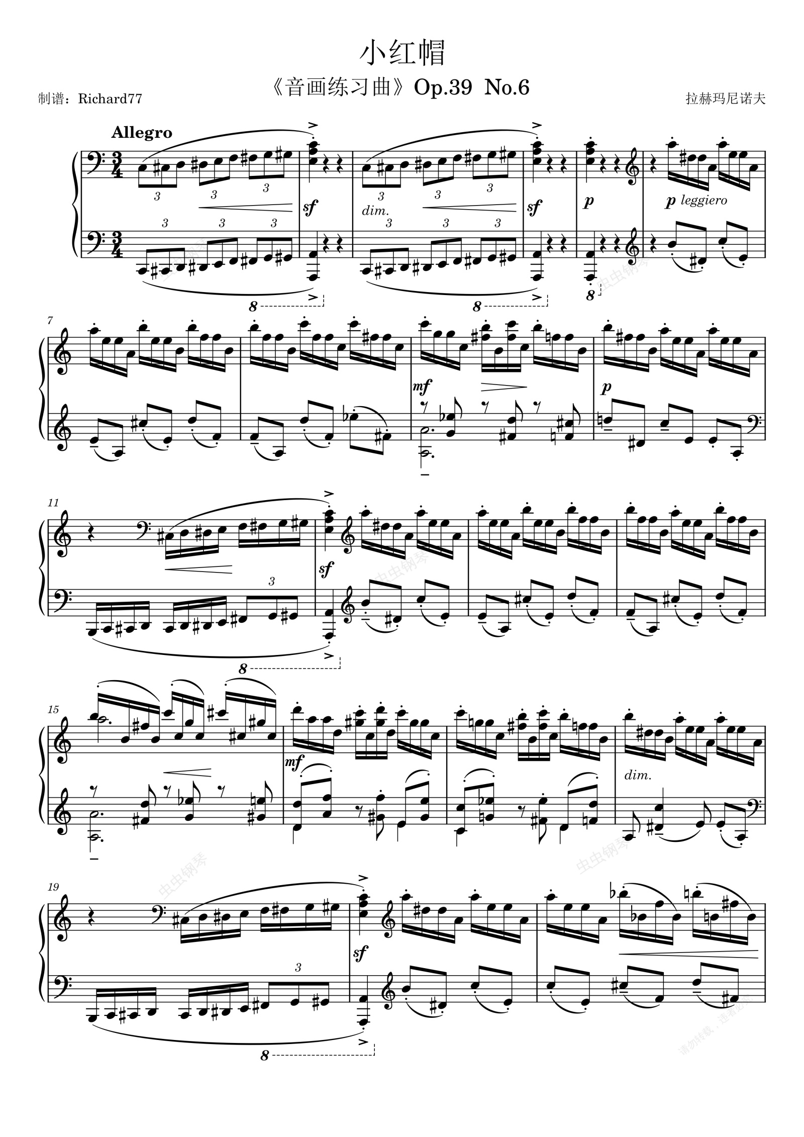 钢琴谱:《音画练习曲》Op39. No.6 小红帽 - 拉赫玛尼诺夫