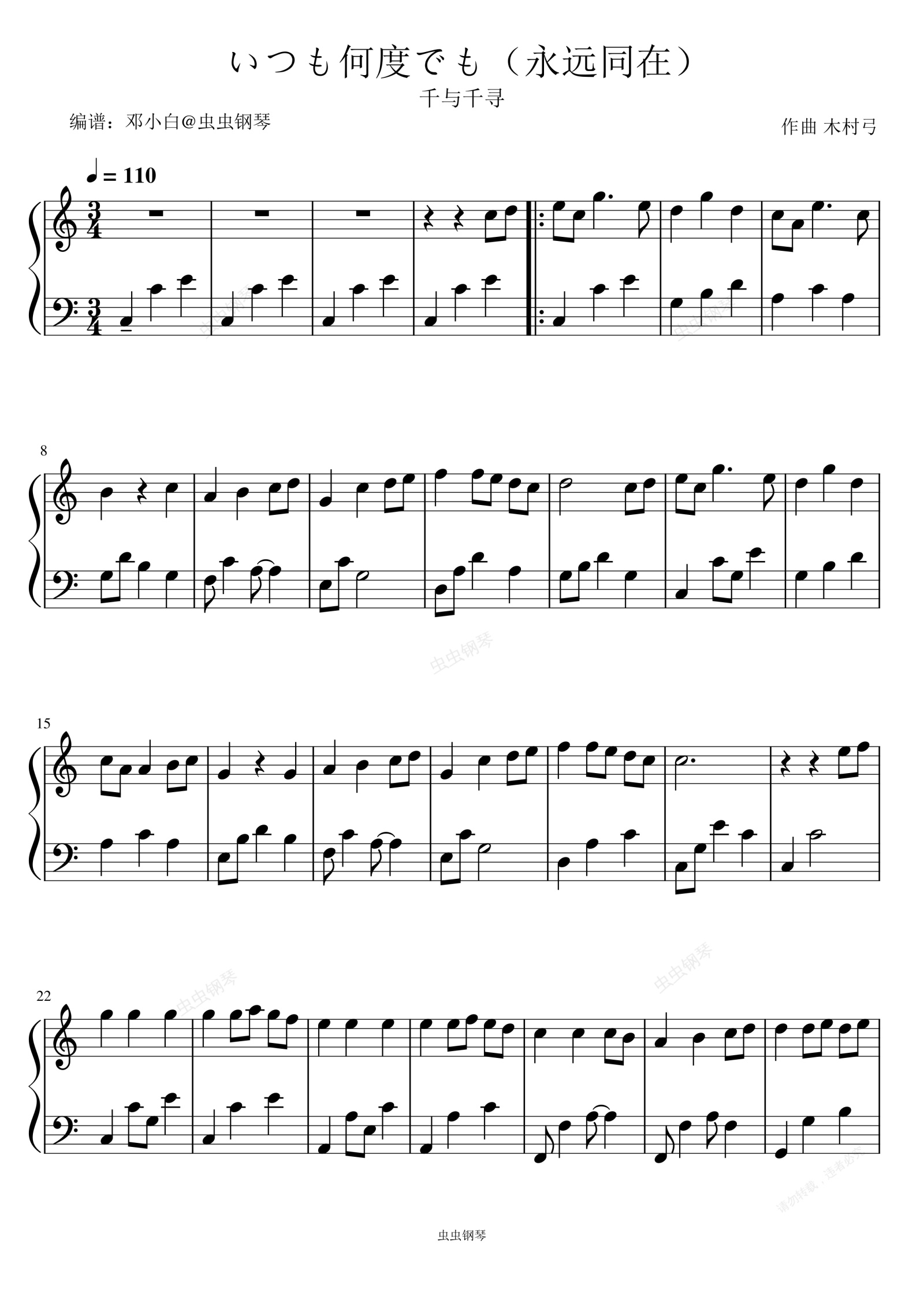 钢琴谱:いつも何度でも(永远同在)-C调《千与千寻》主题曲