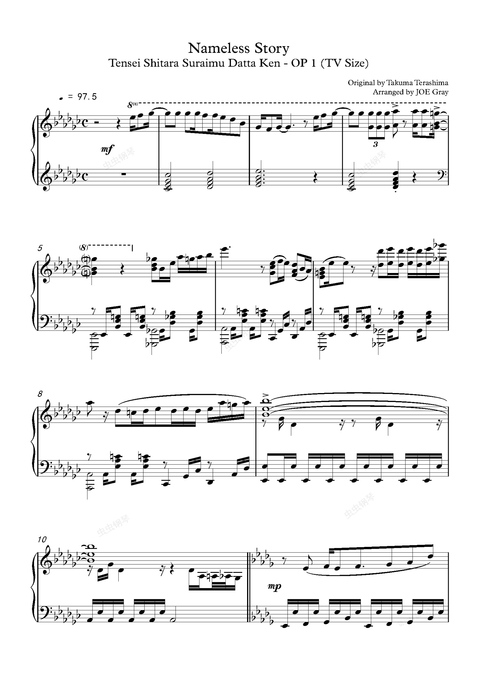 钢琴谱:Nameless Story (《転生したらスライムだった件》OP 1-TV Size)