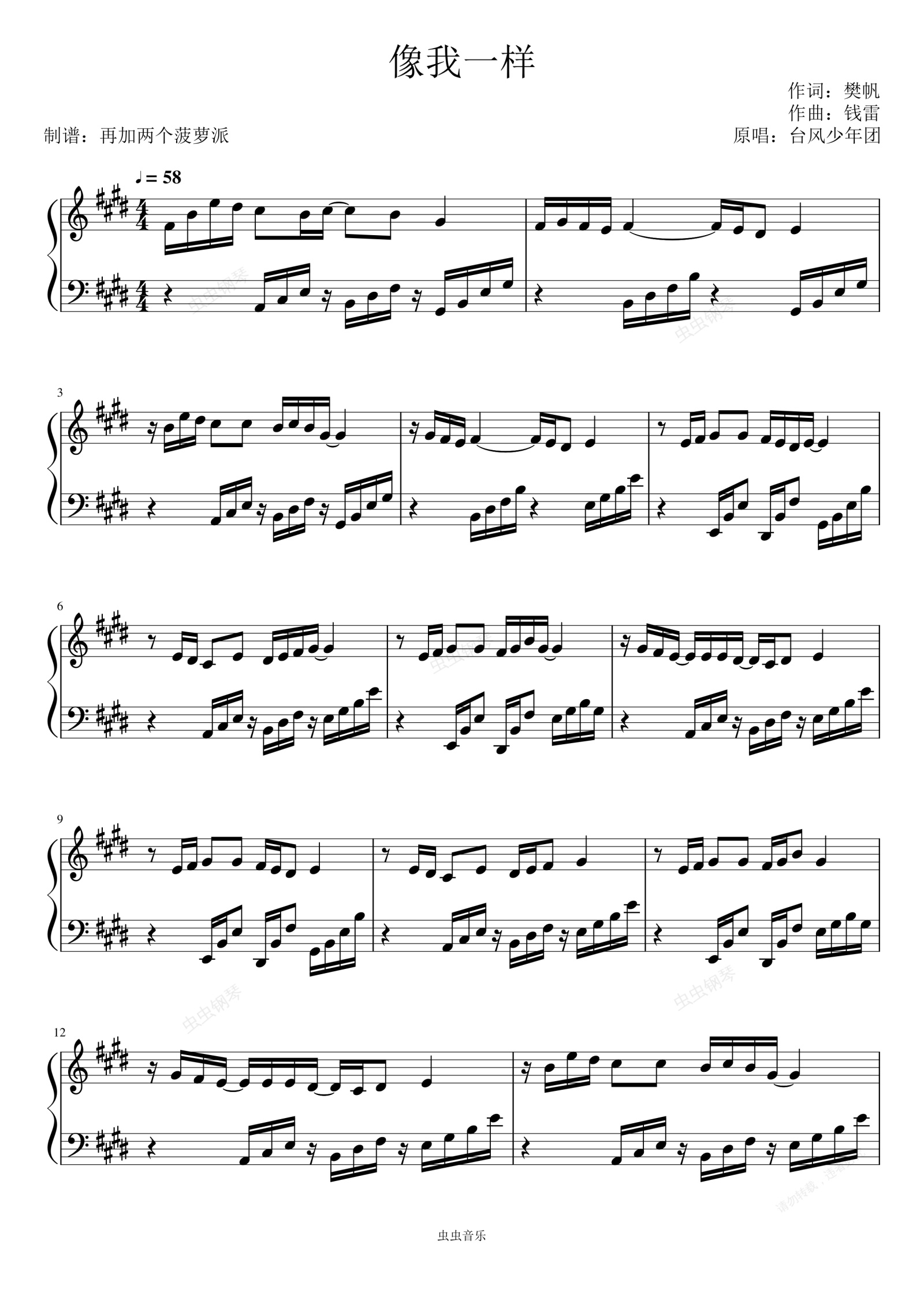 钢琴谱:像我一样 - TYT台风少年团(原调)