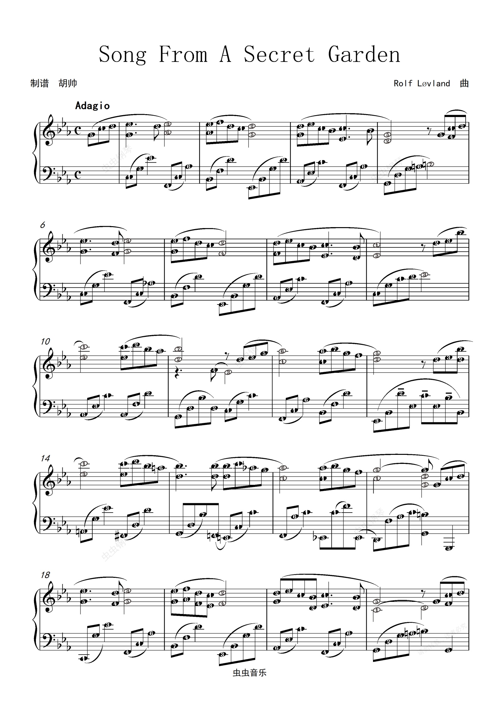 钢琴谱:神秘花园(Song From A Secret Garden)【简五谱】