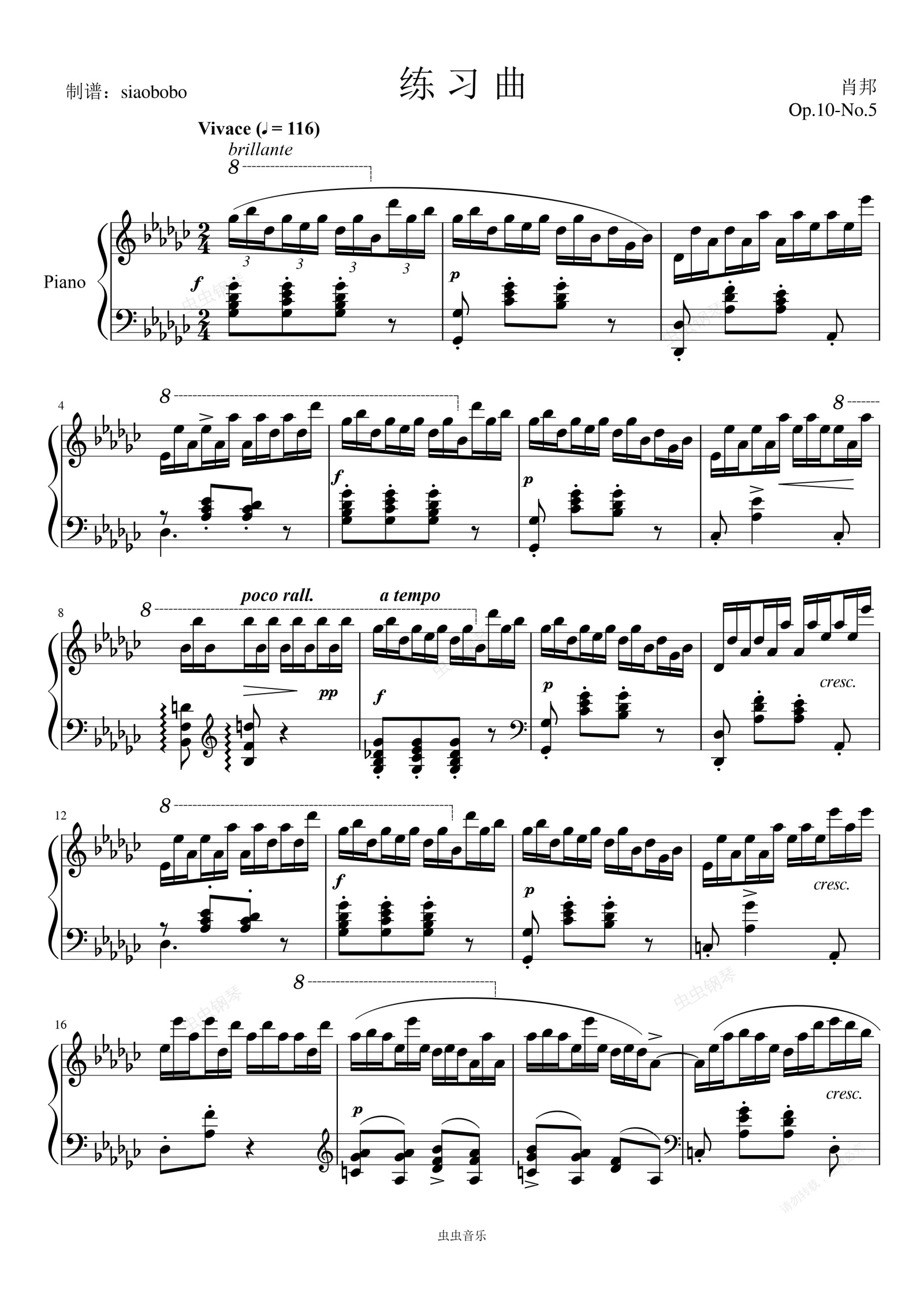 钢琴谱:Etude Op. 10 No. 5——肖邦练习曲——No. 5 (黑键)