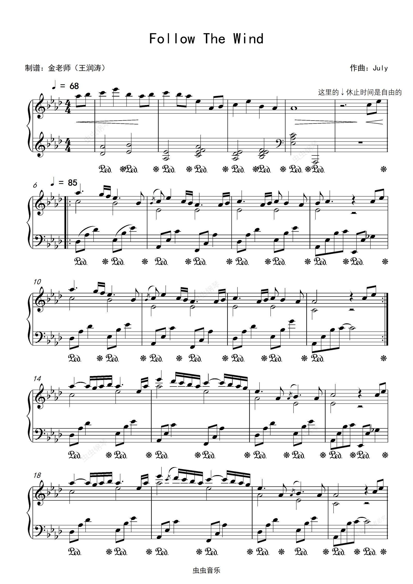 钢琴谱:Follow The Wind-金老师钢琴独奏谱