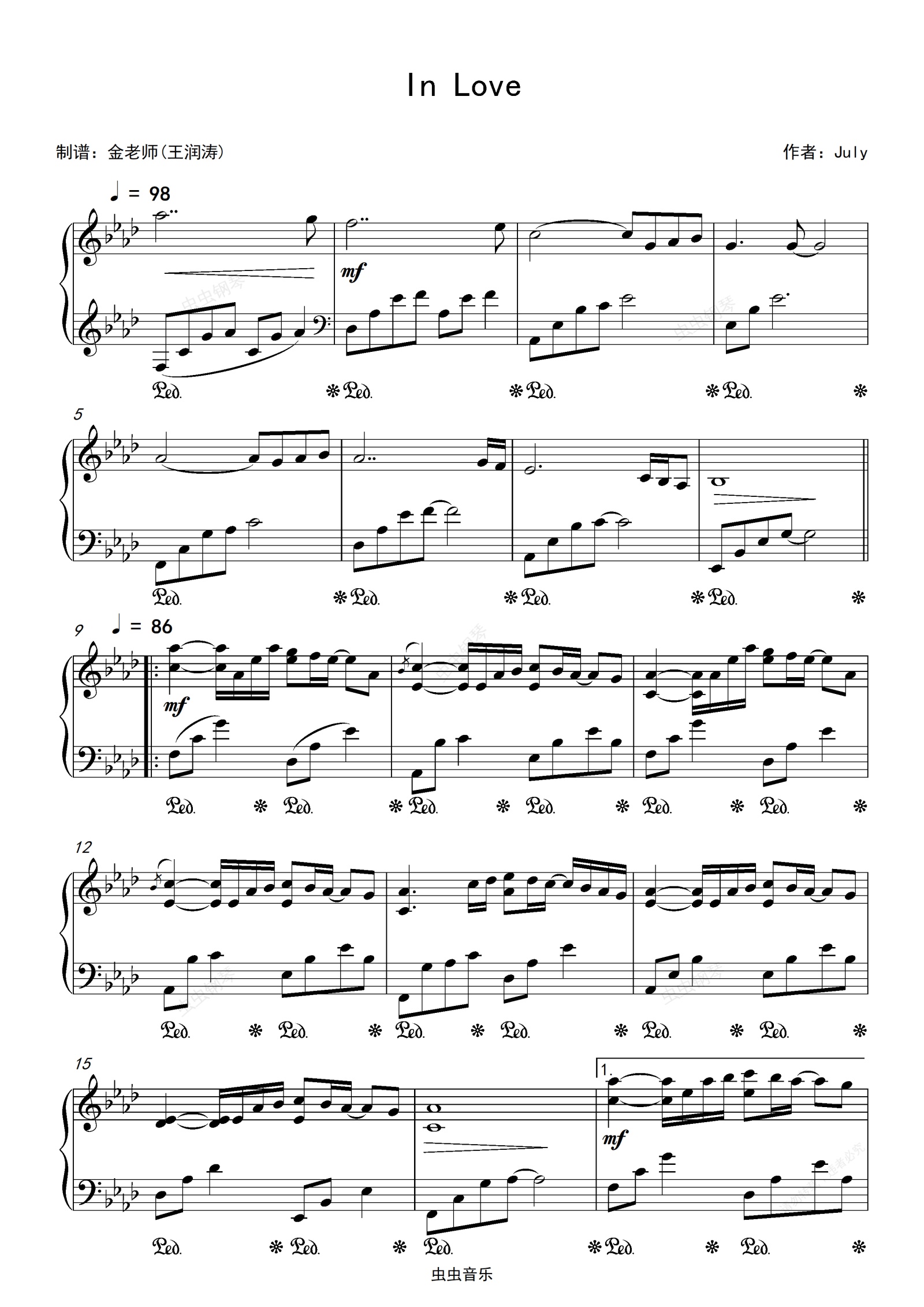 钢琴谱:In Love-金老师钢琴独奏谱