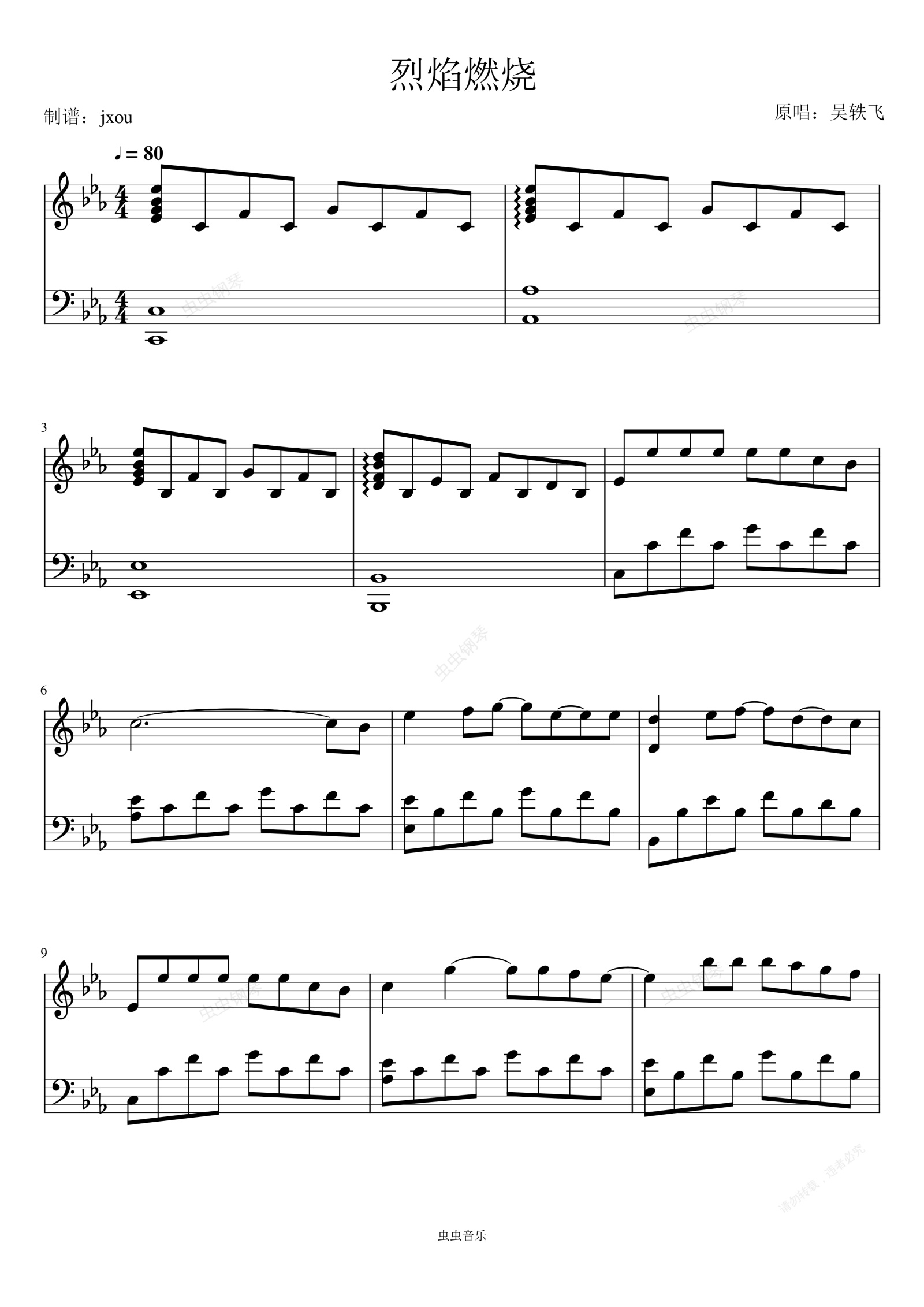 钢琴谱:烈焰燃烧 精灵王座插曲