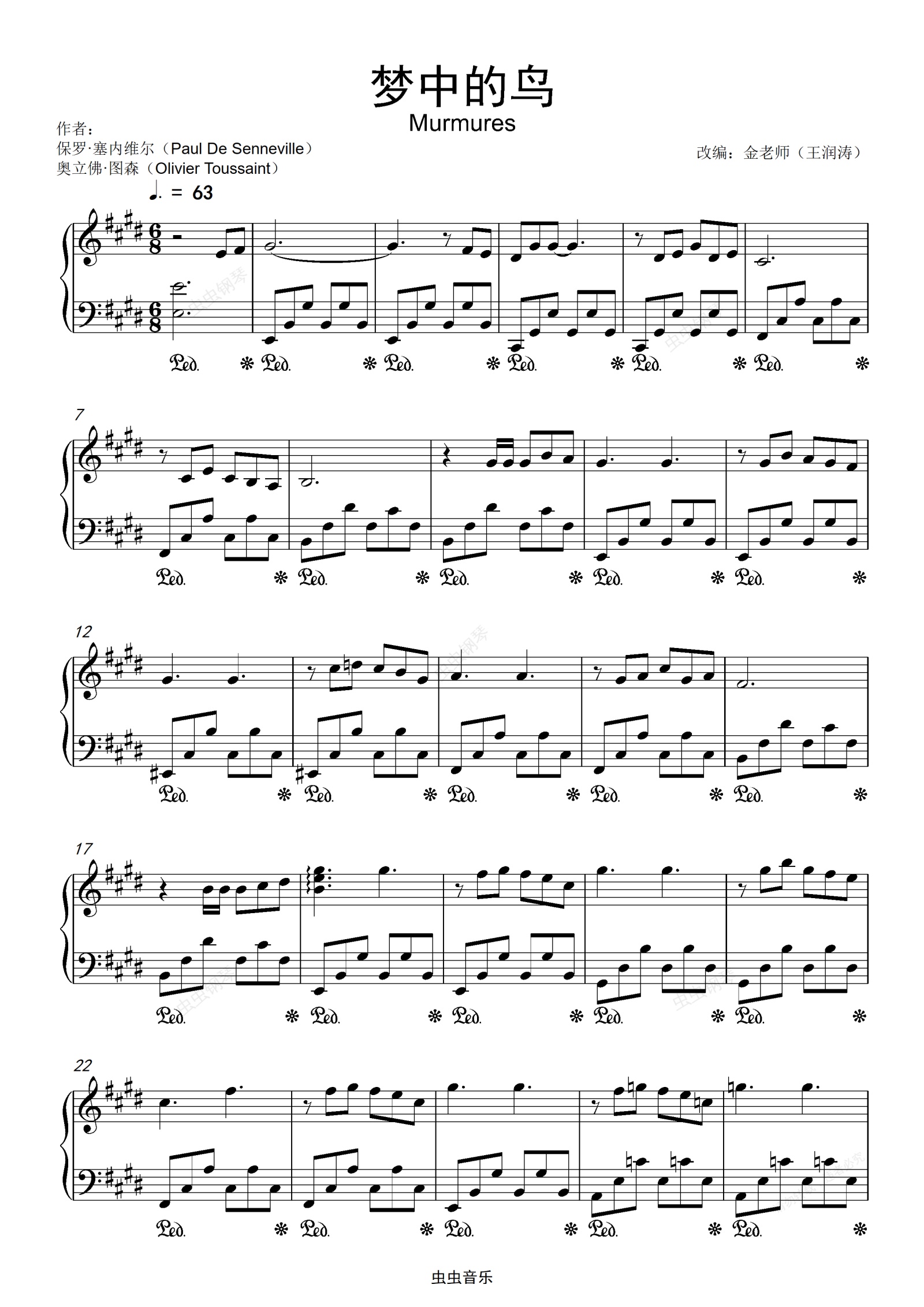 钢琴谱:梦中的鸟(Murmures)-金老师独奏谱