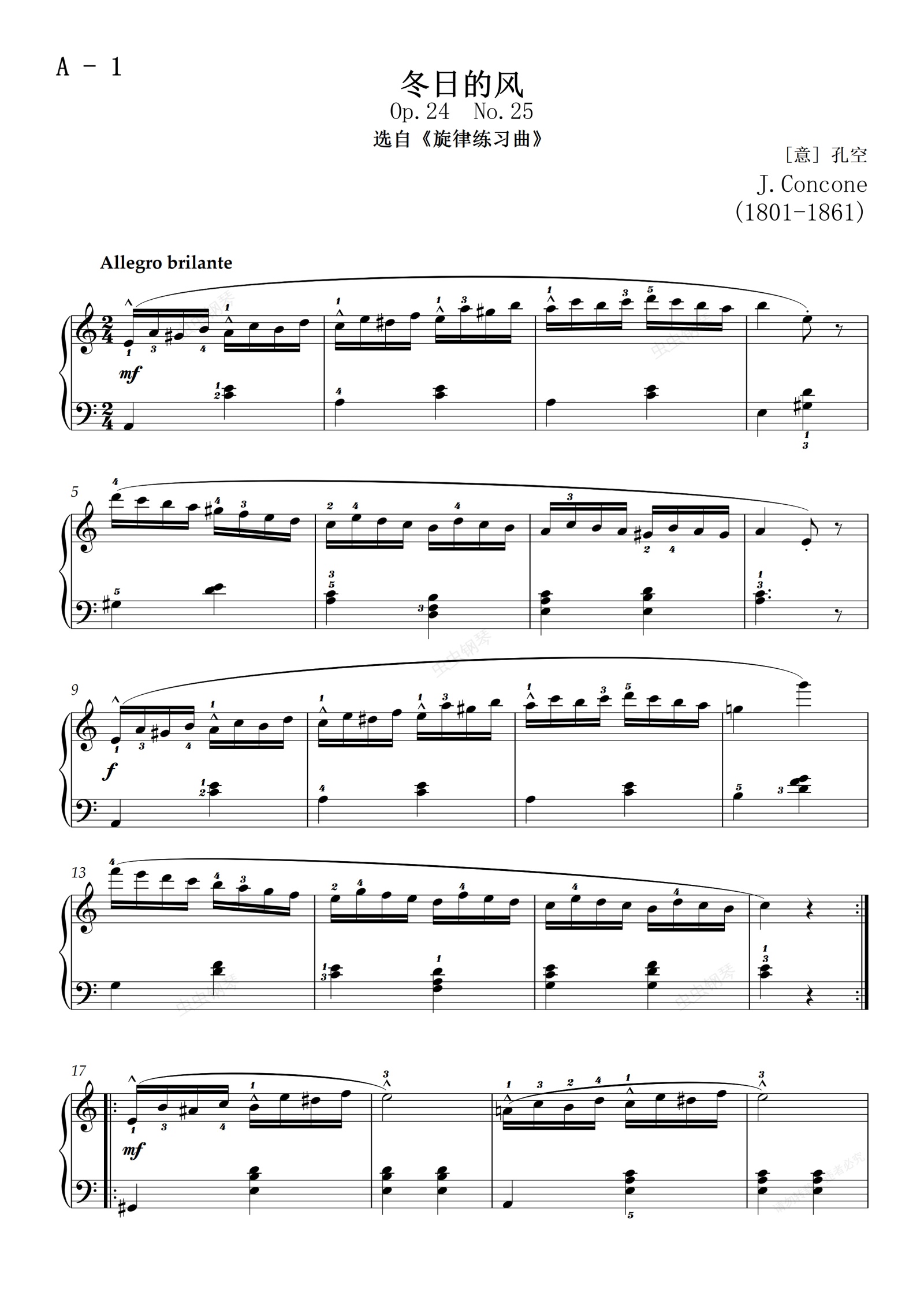 钢琴谱:【四级】A-1 冬日的风 [带指法](2019新版钢琴考级)