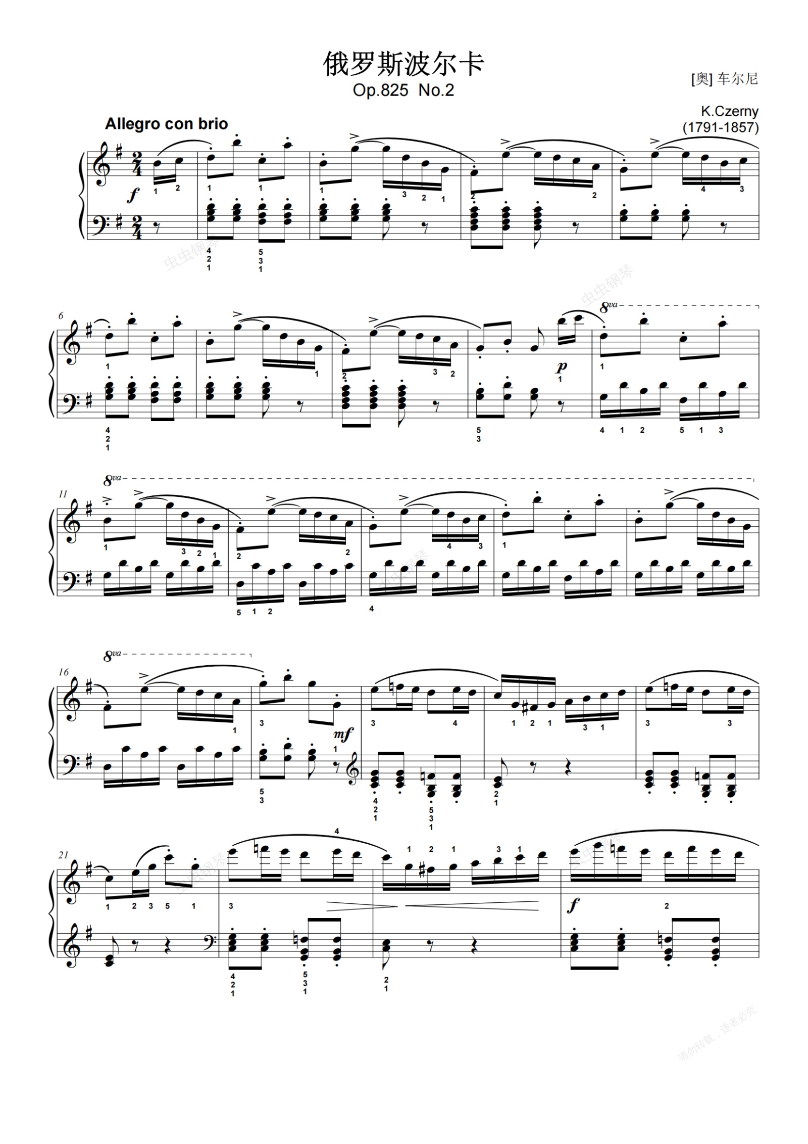 钢琴谱:【四级】C-3 俄罗斯波尔卡 [带指法](2019新版钢琴考级)
