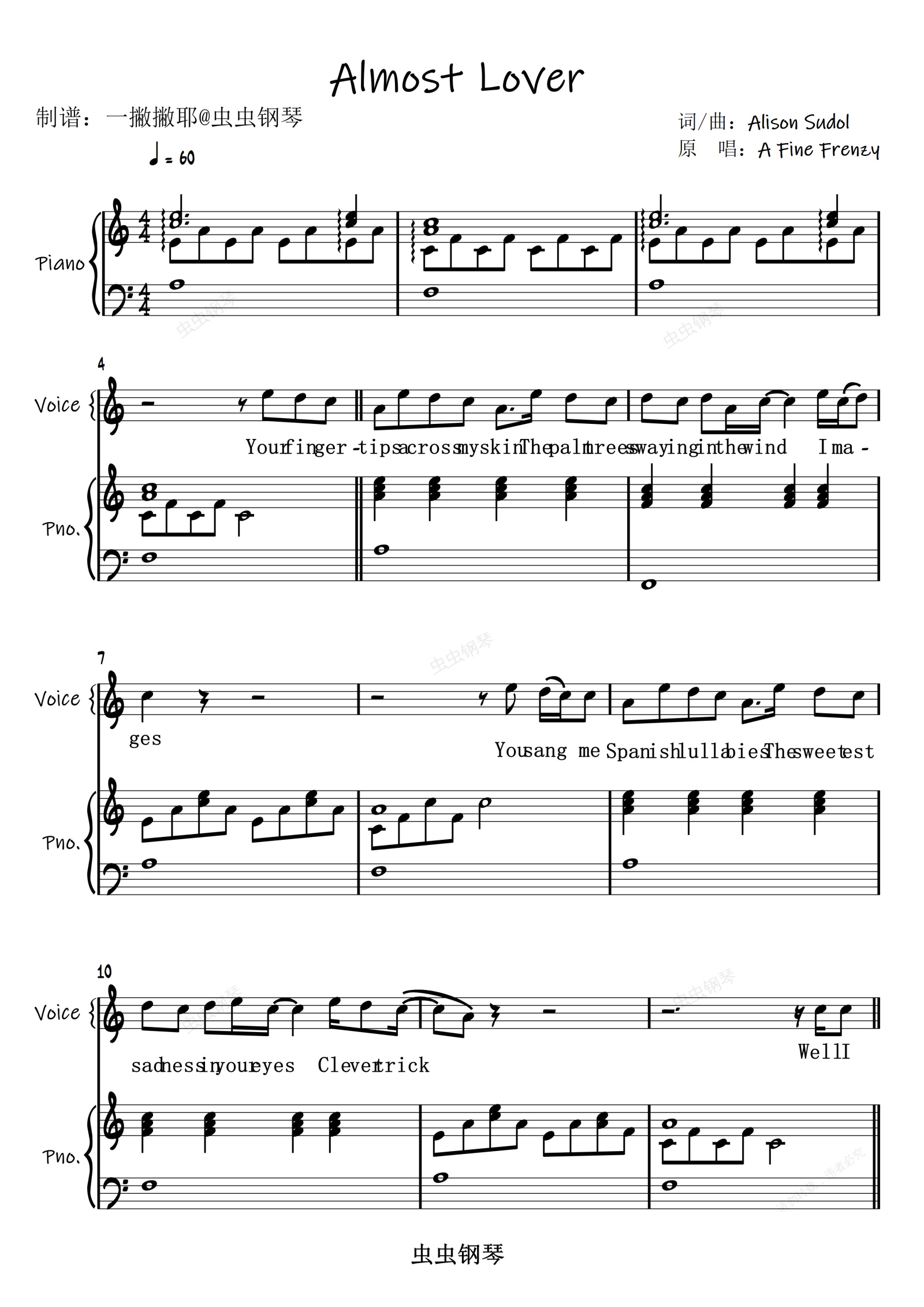 钢琴谱:Almost Lover【弹唱谱】A Fine Frenzy「一撇撇耶」