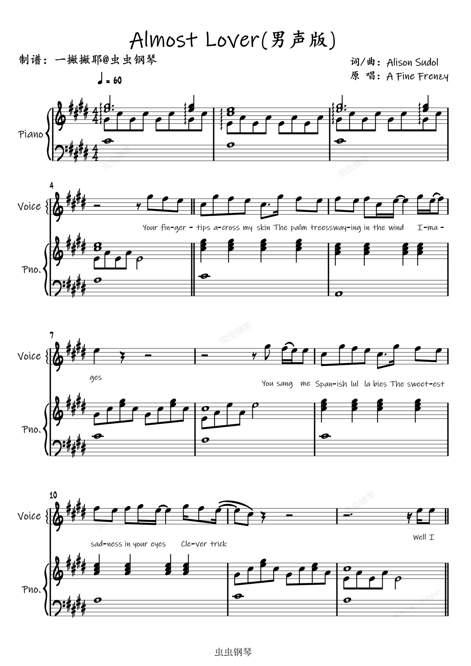 钢琴谱:Almost Lover【降调男版弹唱】A Fine Frenzy「一撇撇耶」