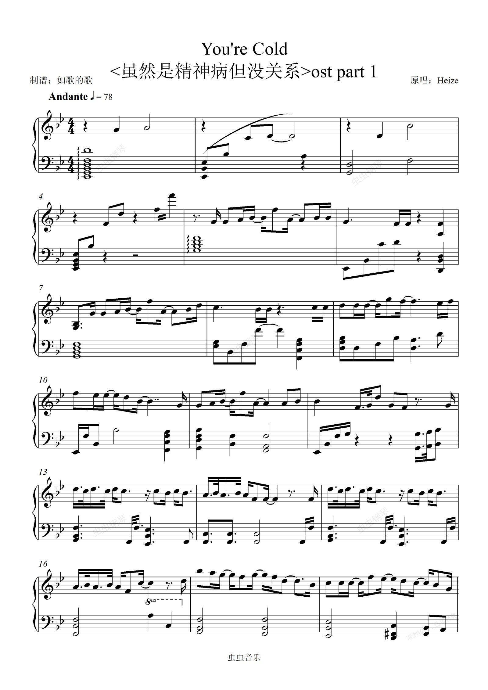 钢琴谱:You're Cold虽然是精神病但没关系ost part 1