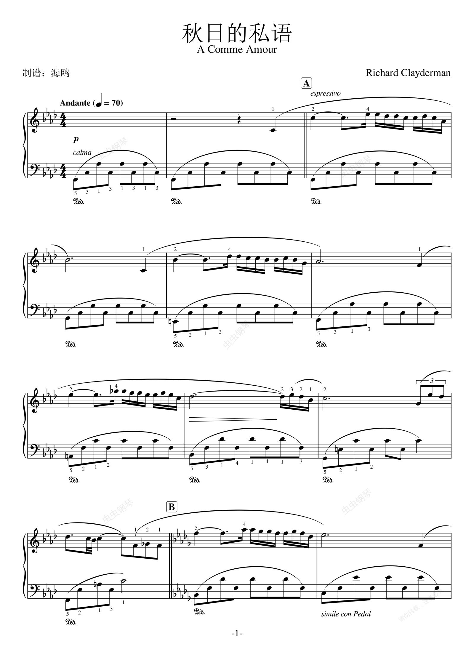 秋日的私语【官方校正版】(秋的喁语 A COMME AMOUR 美好的恋情 理查德克莱德曼)