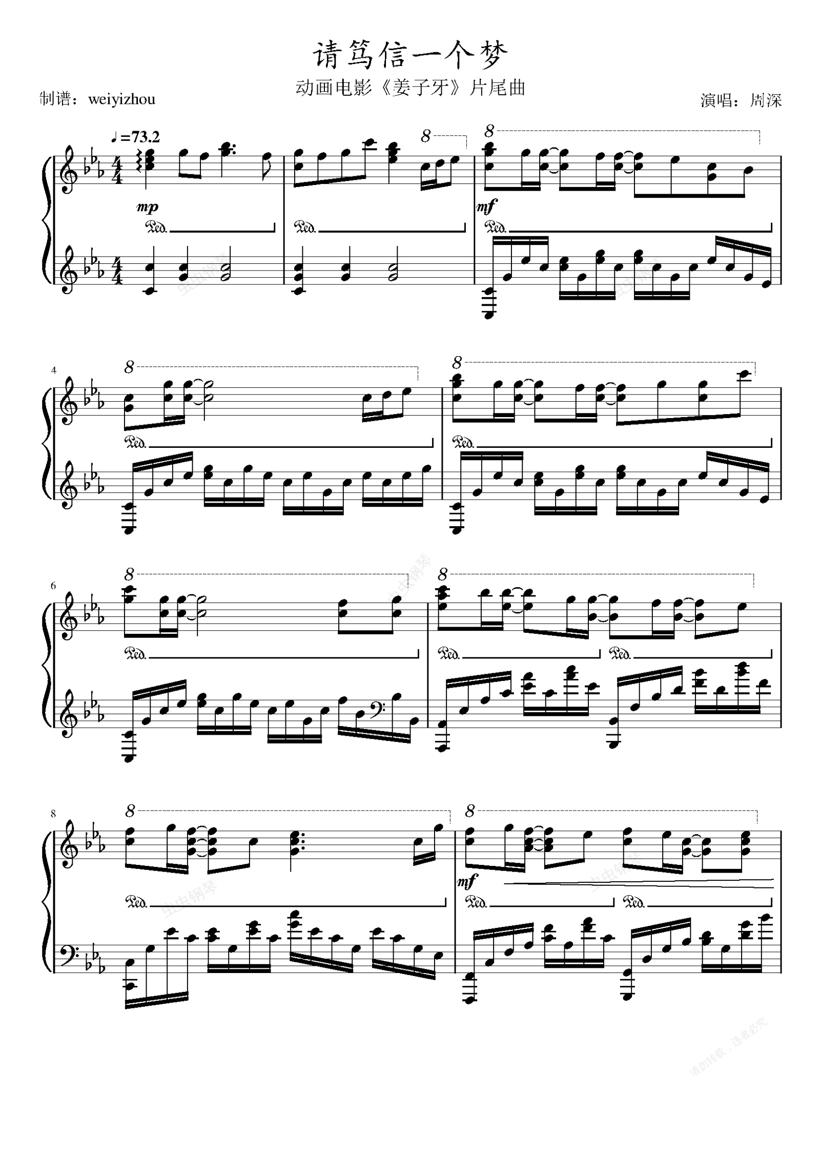 钢琴谱:请笃信一个梦(华丽独奏版)