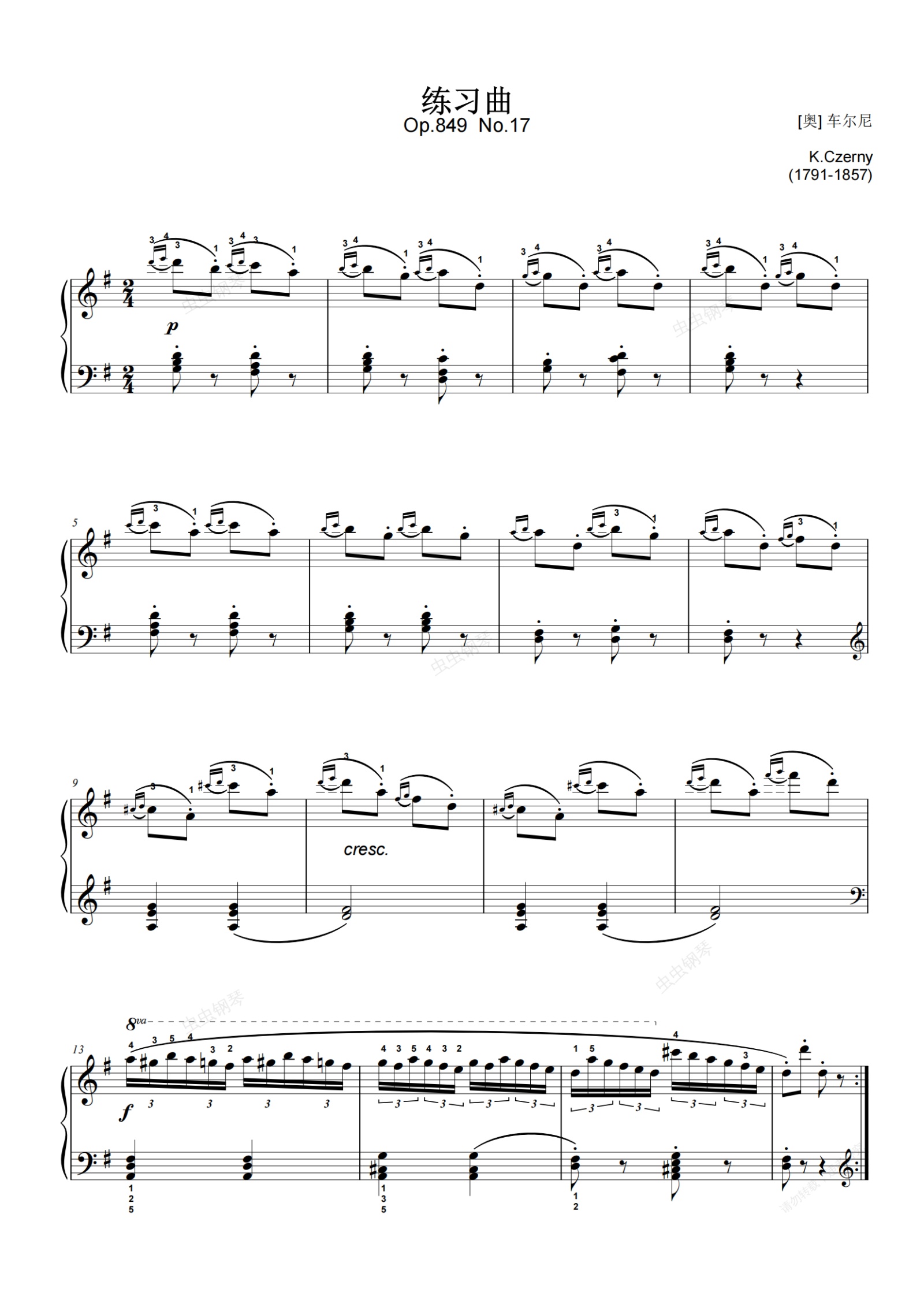 钢琴谱:【五级】A-1 练习曲 [带指法](2019新版钢琴考级)