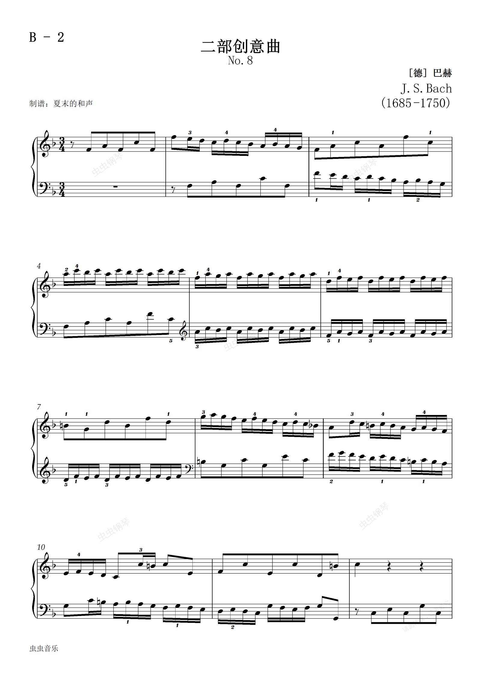 钢琴谱:【五级】B-2 二部创意曲 [带指法](2019新版钢琴考级)