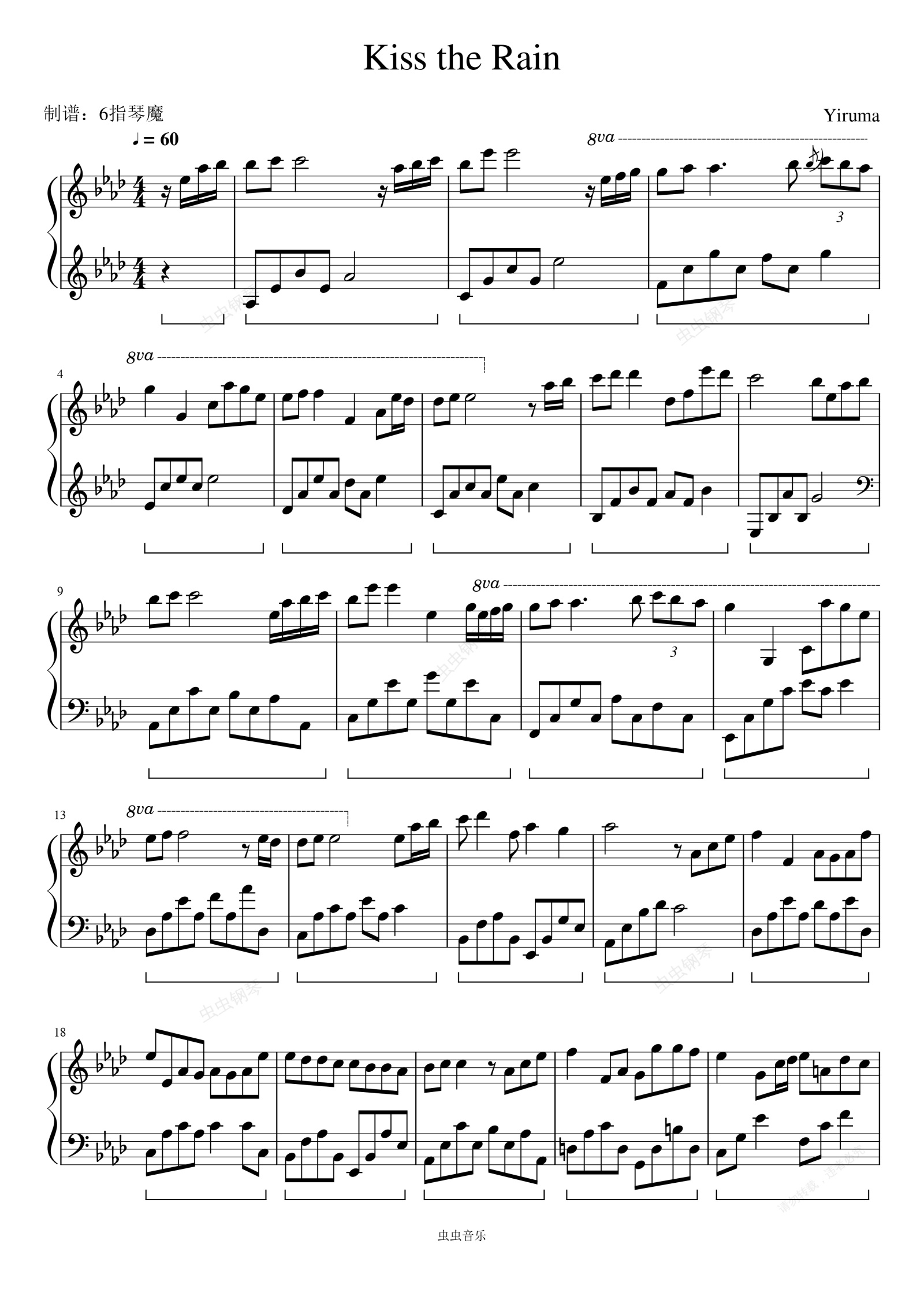 钢琴谱:Kiss the Rain(雨的印记)——简单原调完美版