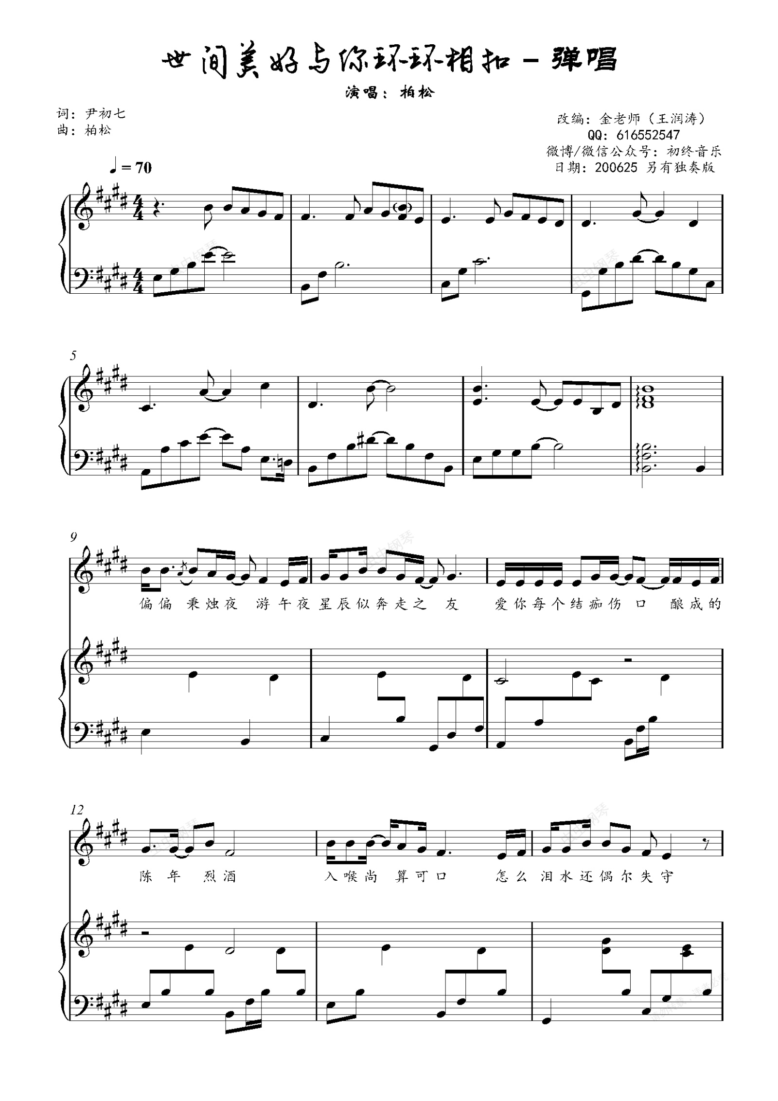 钢琴谱:世间美好与你环环相扣-金老师弹唱谱