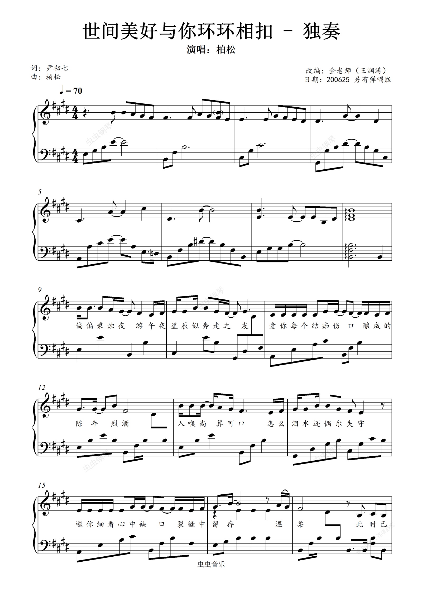 钢琴谱:世间美好与你环环相扣-金老师独奏版