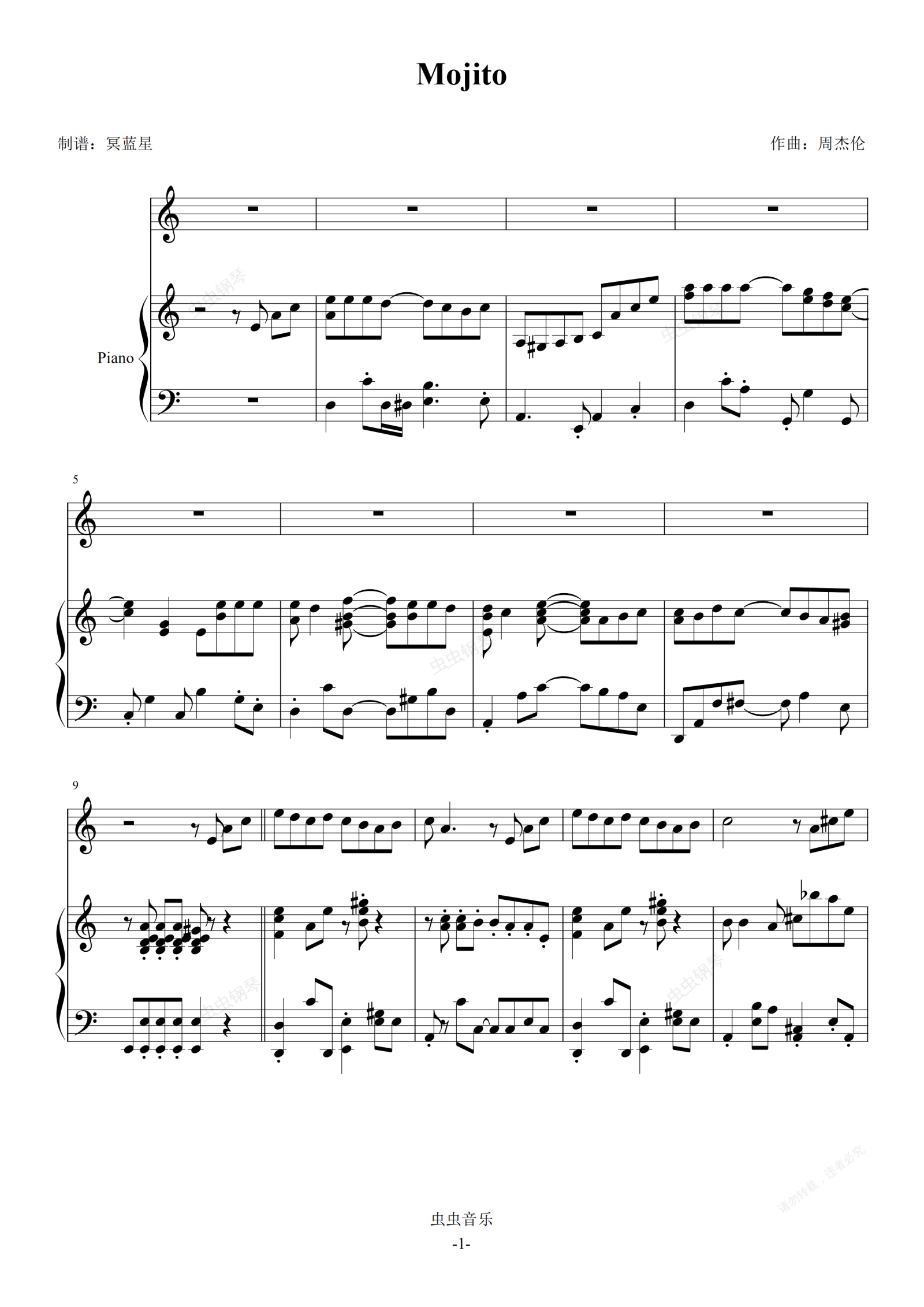 钢琴谱:mojito-周杰伦 弹唱谱