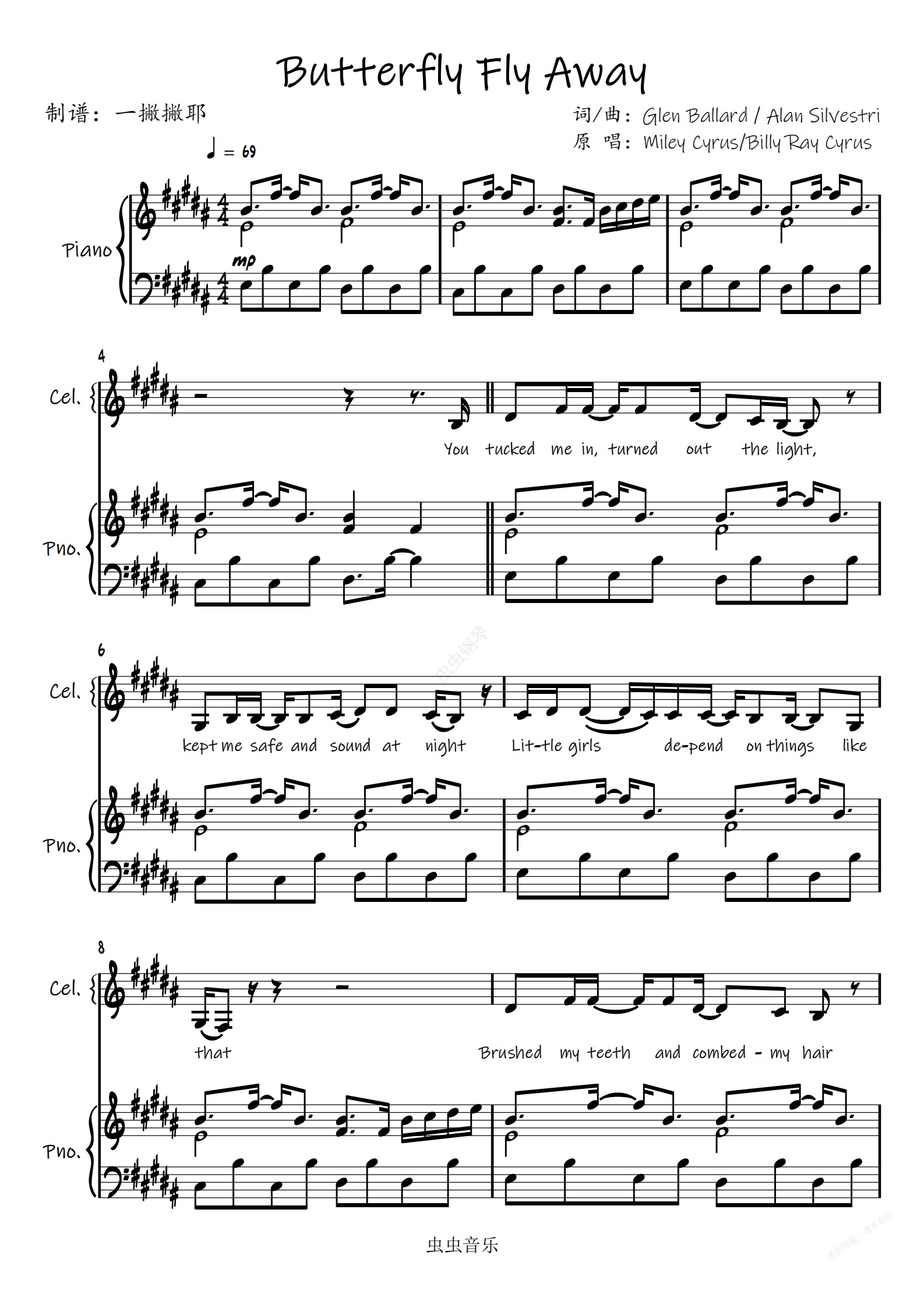 钢琴谱:【弹唱(附和声)谱】Butterfly Fly Away-Miley Cyrus/Billy Ray Cyrus《乖乖女是大明星》「一撇撇耶」