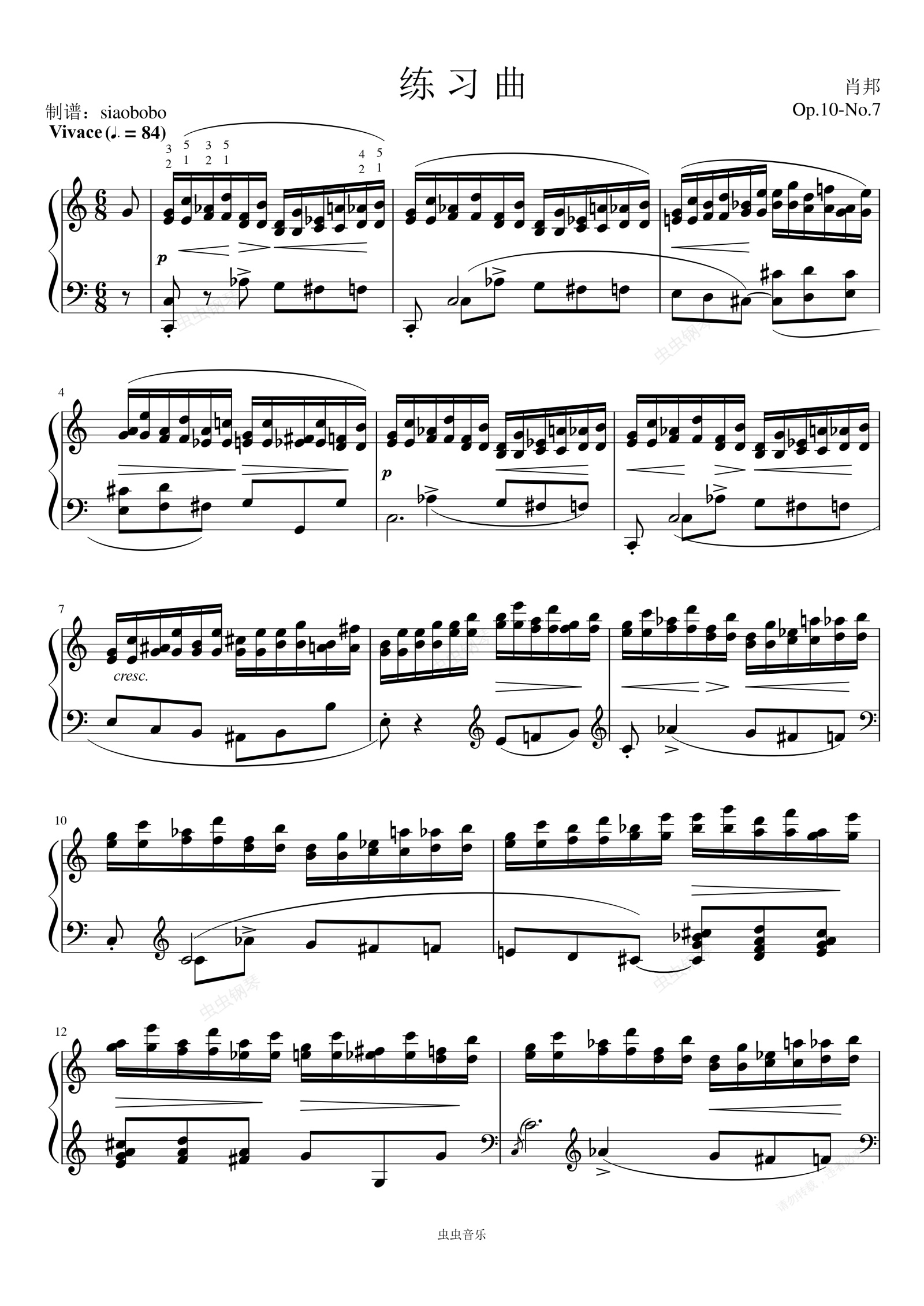钢琴谱:Etude  Op. 10 No. 7——肖邦练习曲