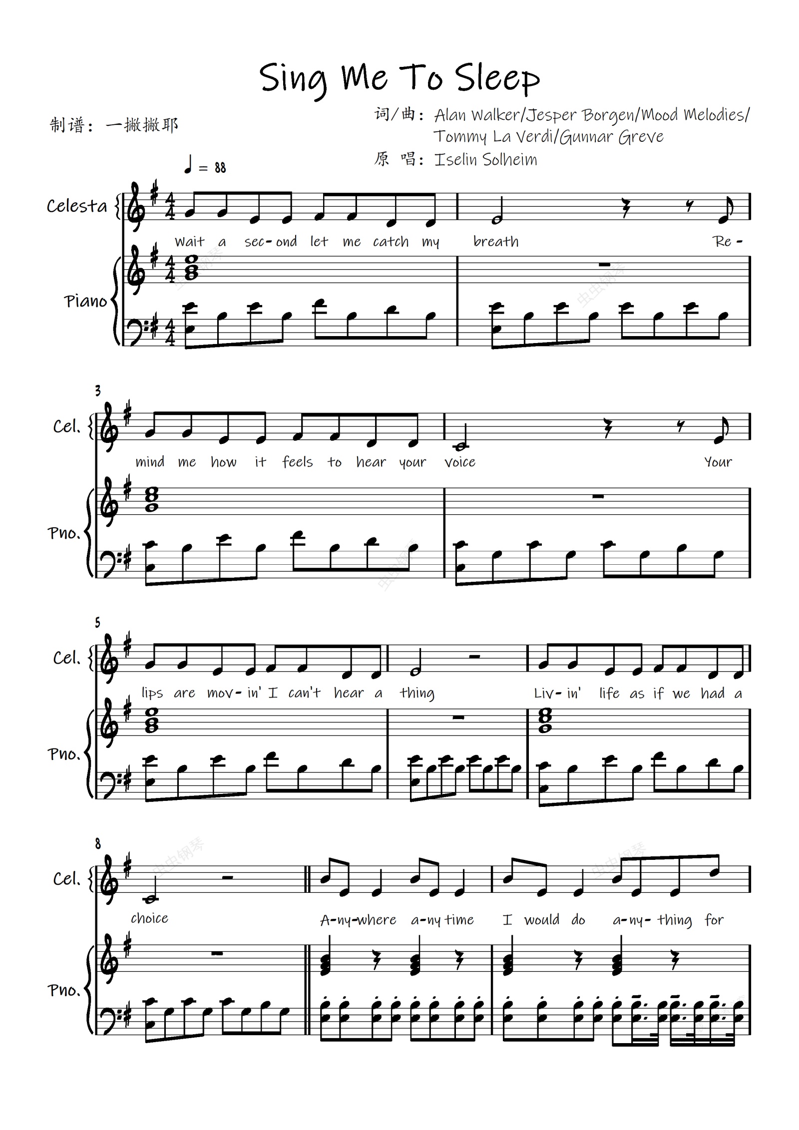 钢琴谱:【降调版弹唱谱】Sing Me to Sleep-Alan Walker/Iselin Solheim「一撇撇耶」