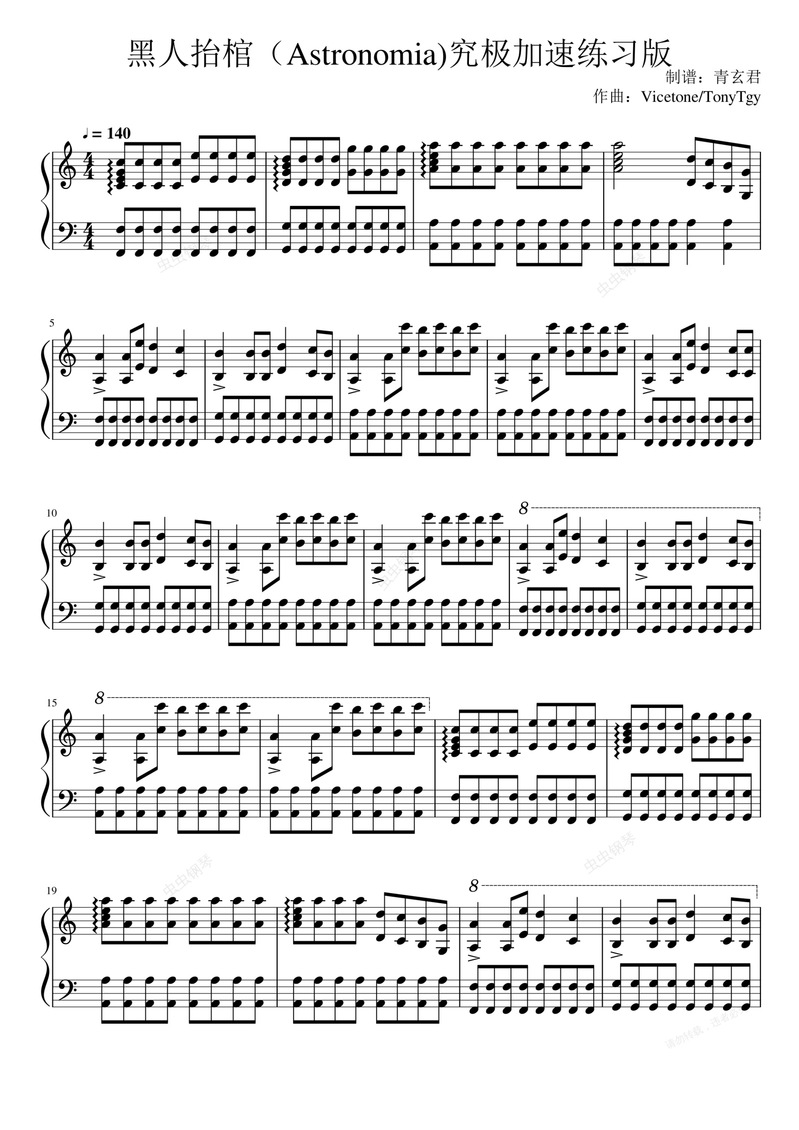 钢琴谱:黑人抬棺(Astronomia)究极加速练习版