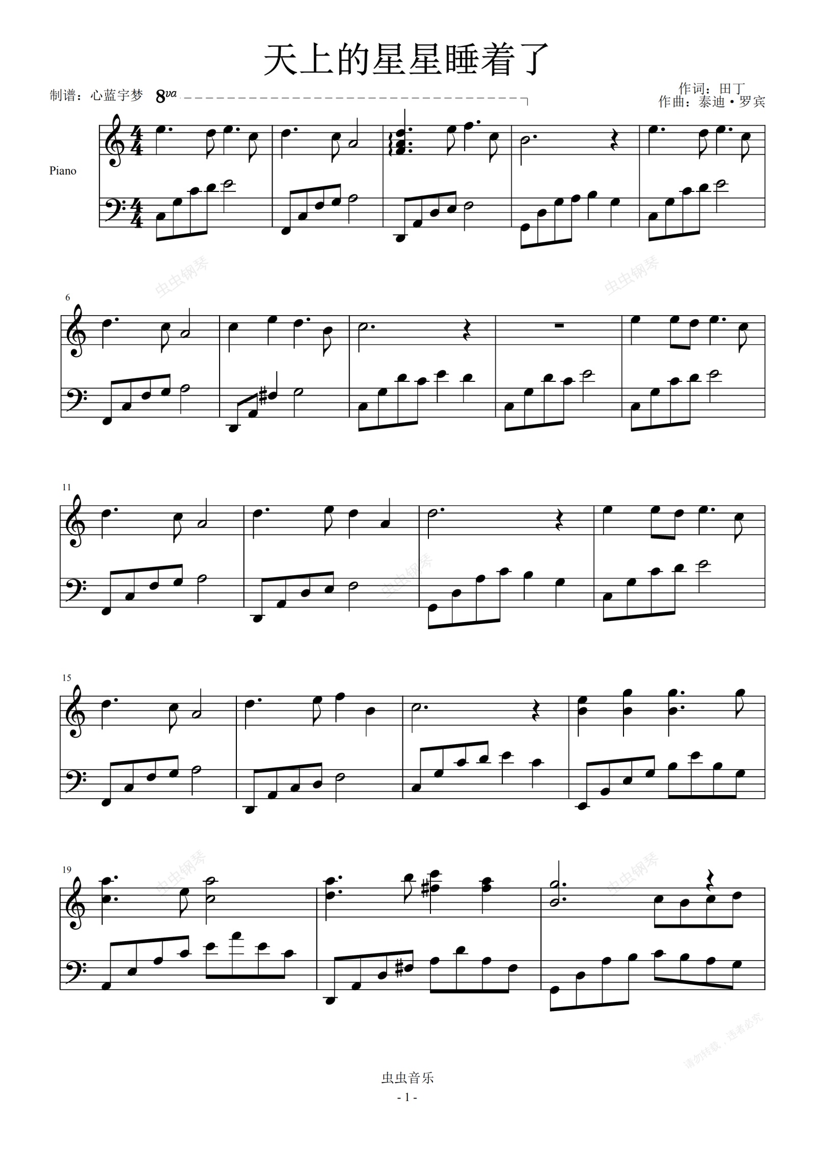 钢琴谱:天上的星星睡着了- C调《悟空传 电影音乐原声带》