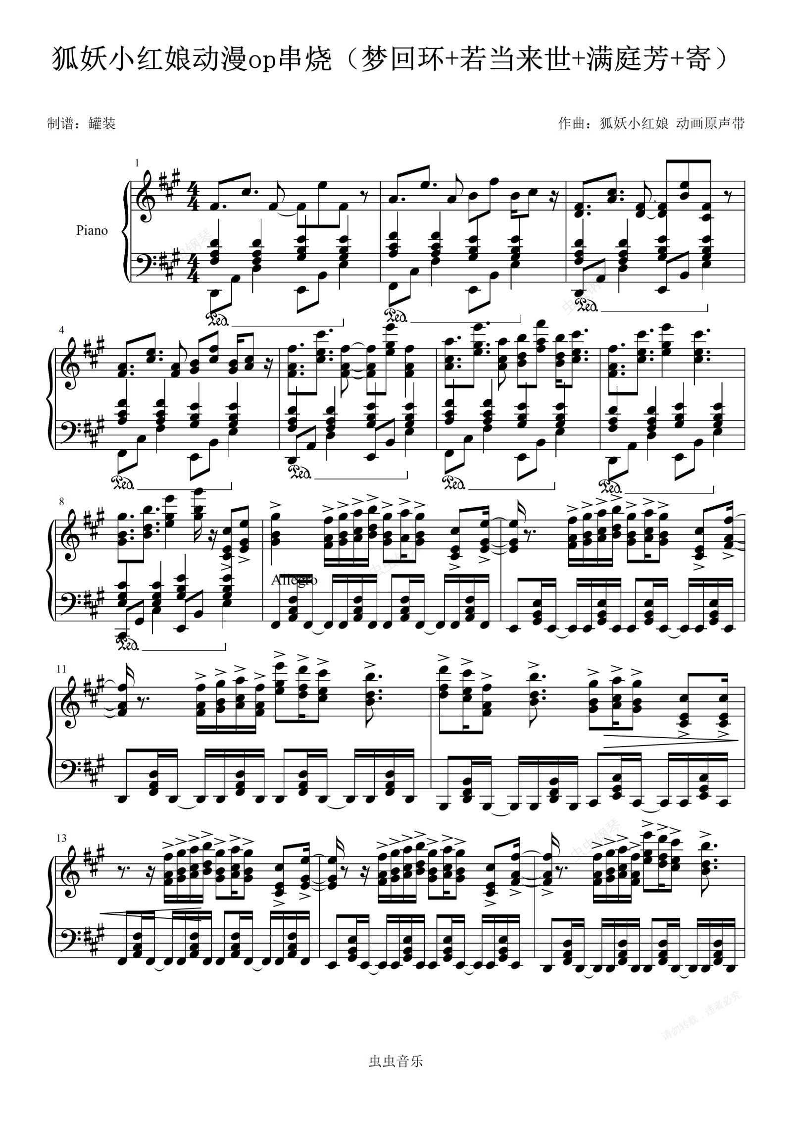 钢琴谱:狐妖小红娘动漫op串烧(梦回环+若当来世+满庭芳+寄)