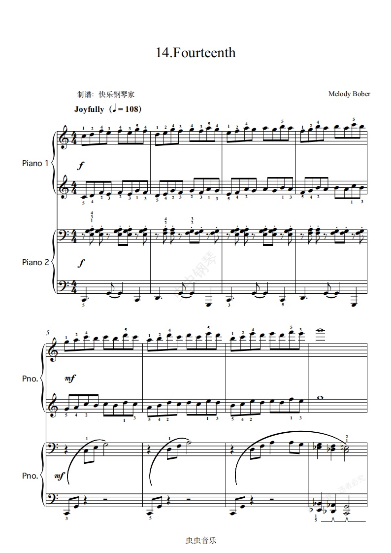 钢琴谱:四手联弹版-哈农第14首