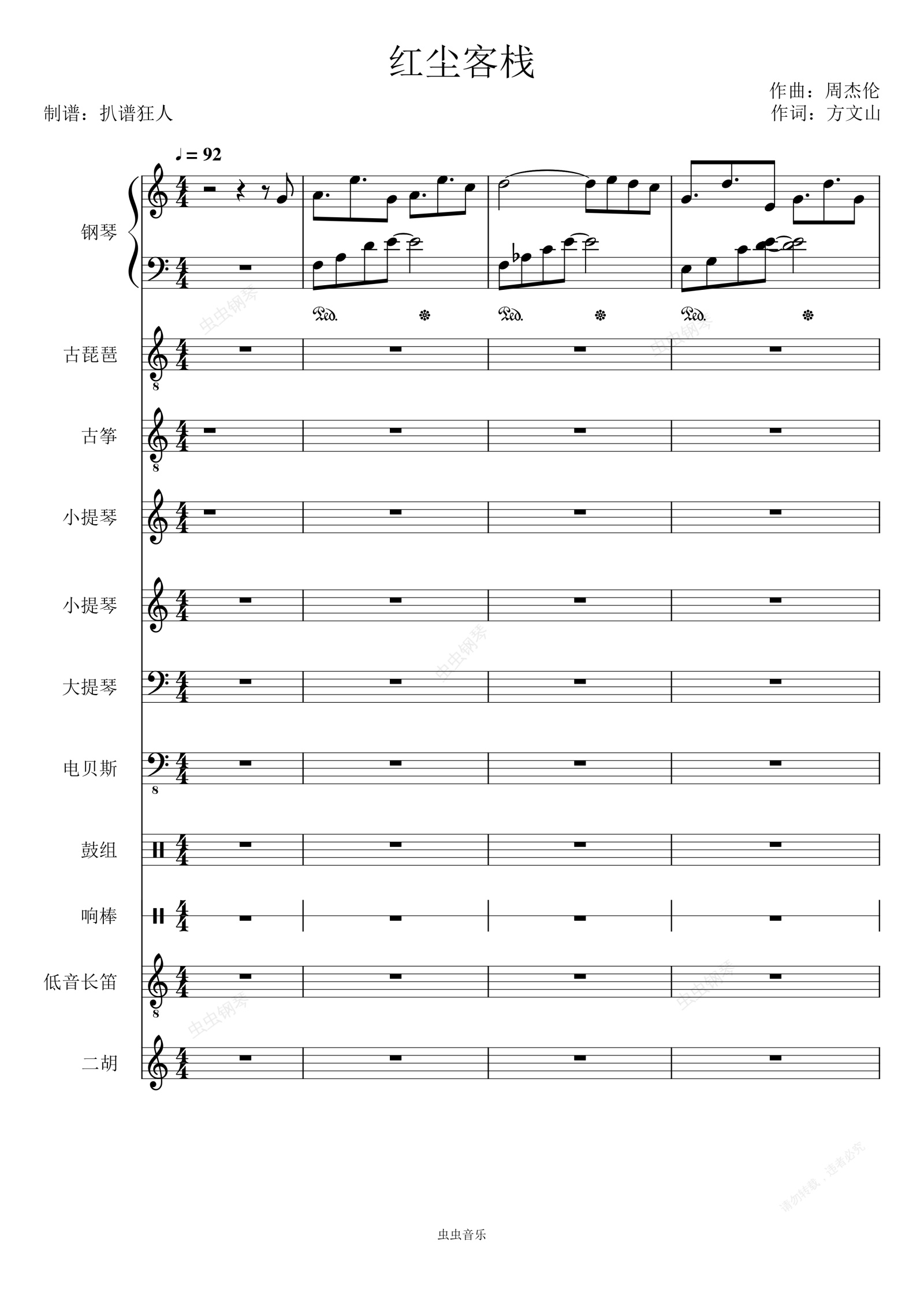 钢琴谱:《红尘客栈》乐队总谱 伴奏谱