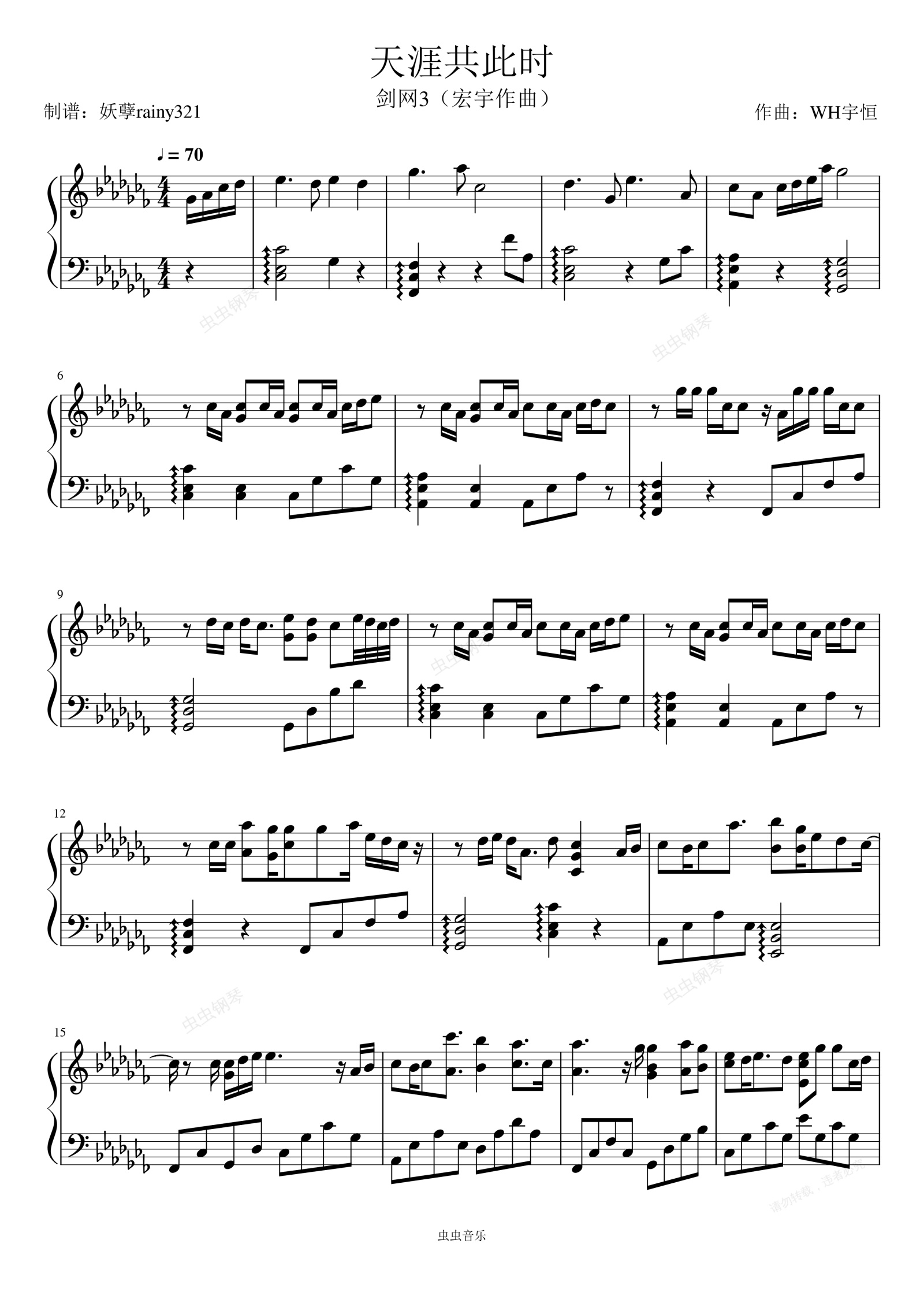 钢琴谱:天涯共此时(剑网3)钢琴谱