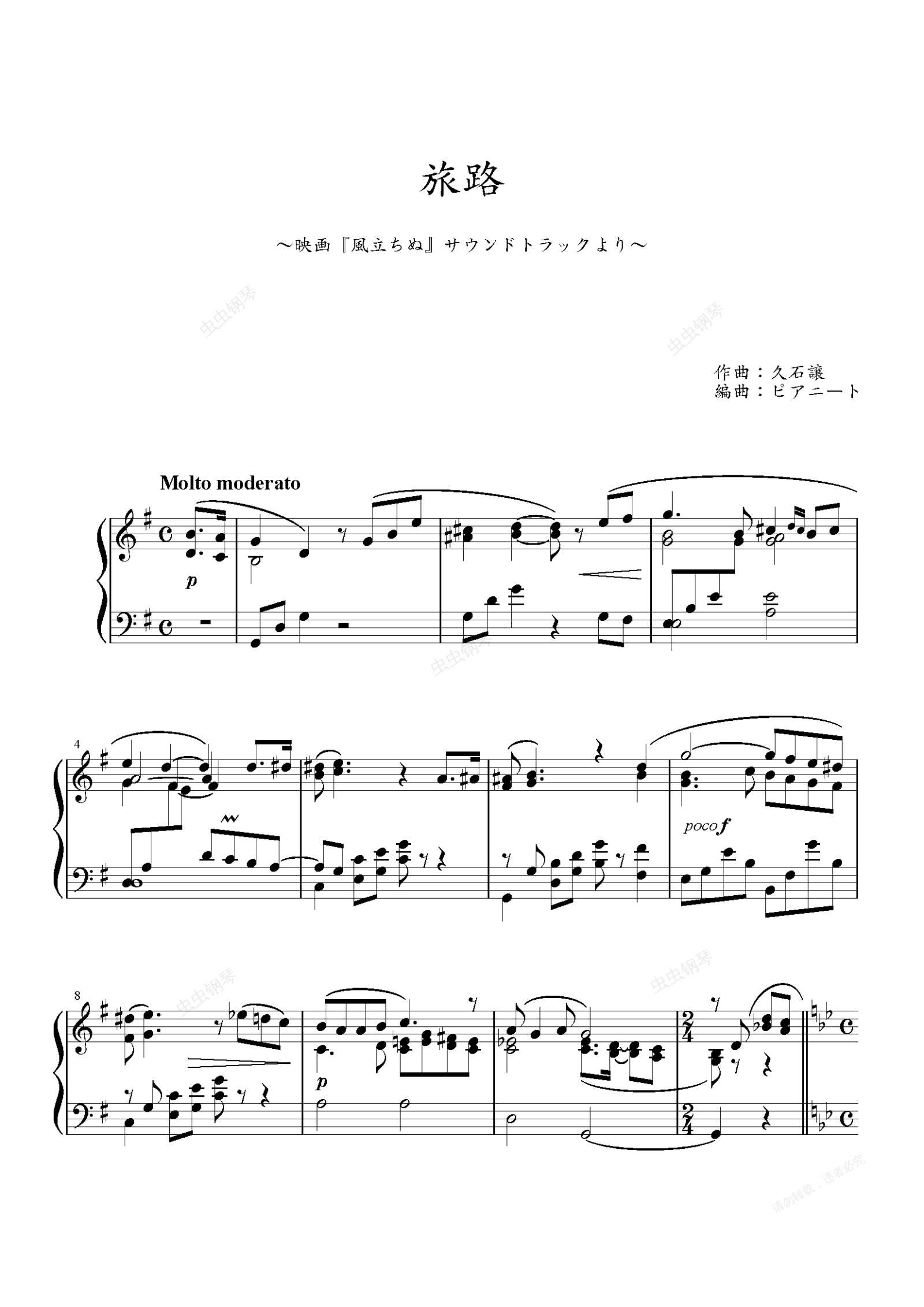 钢琴谱:旅路(夢中飛行) 宫崎骏电影《起风了》