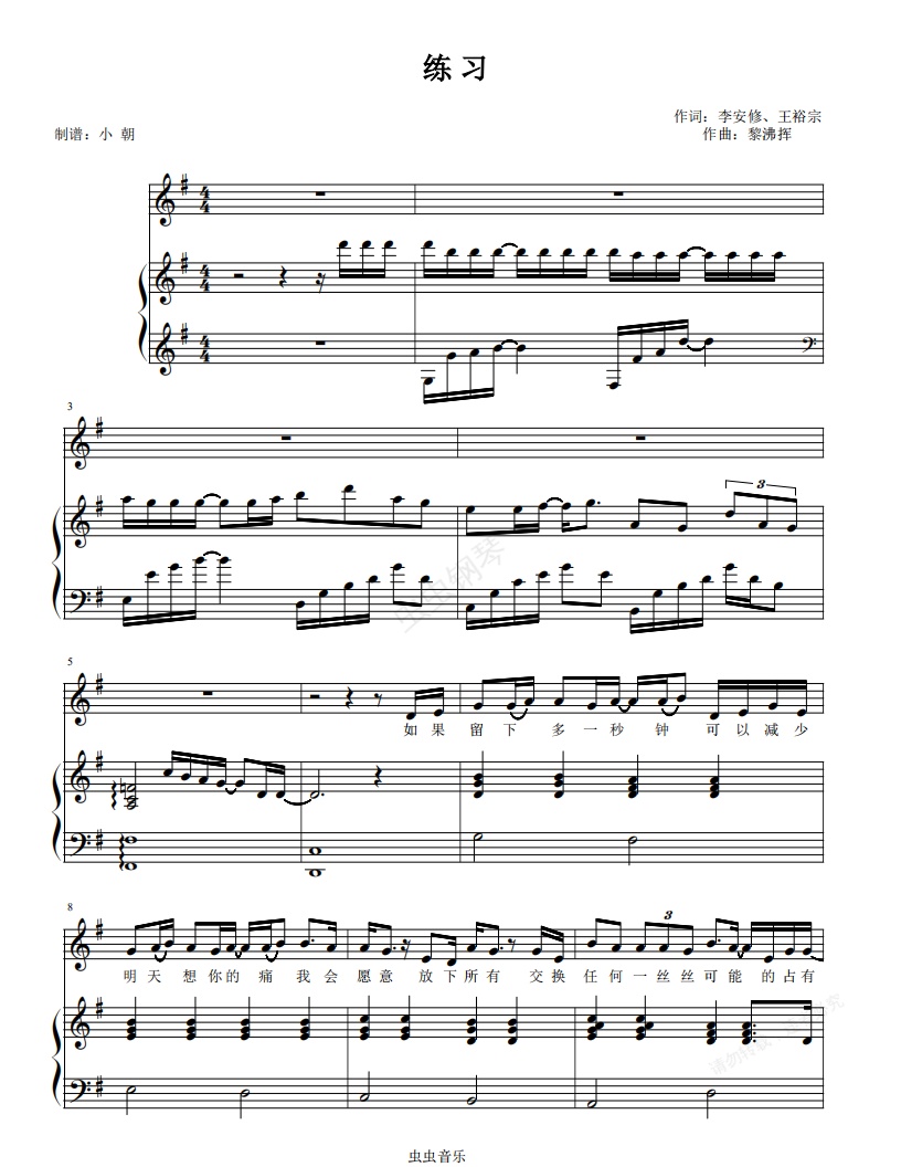 钢琴谱:刘德华《练习》钢琴弹唱谱 小朝弹唱教程 广州世豪文化