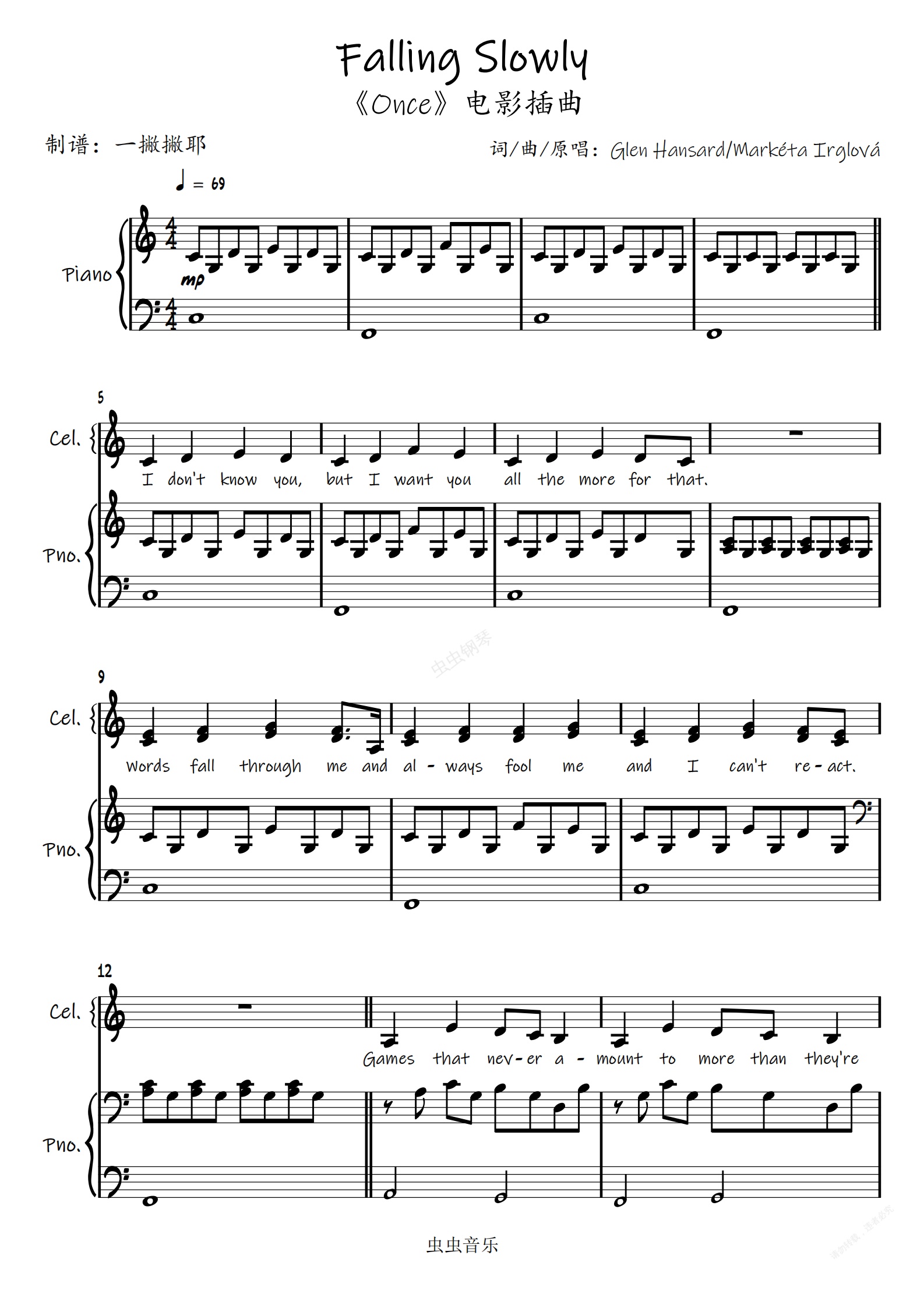 钢琴谱:Falling Slowly【弹唱(附和声)谱】Glen Hansard/Markéta Irglová「一撇撇耶」《Once(曾经)》