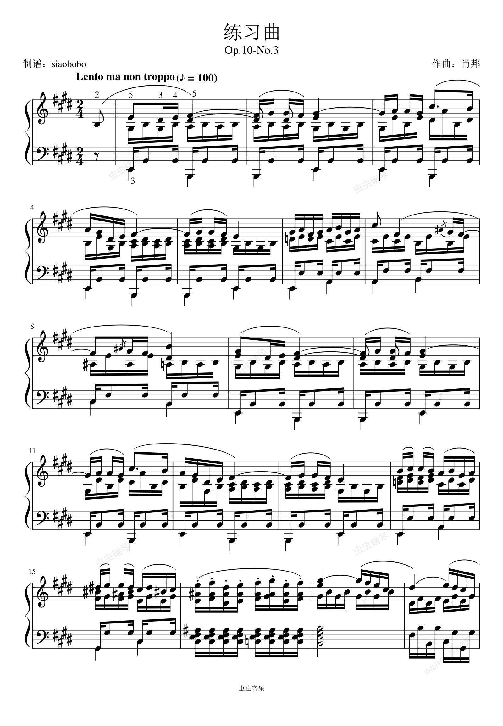 钢琴谱:Etude Op. 10- No. 3——肖邦练习曲( 作品10号,第3首)