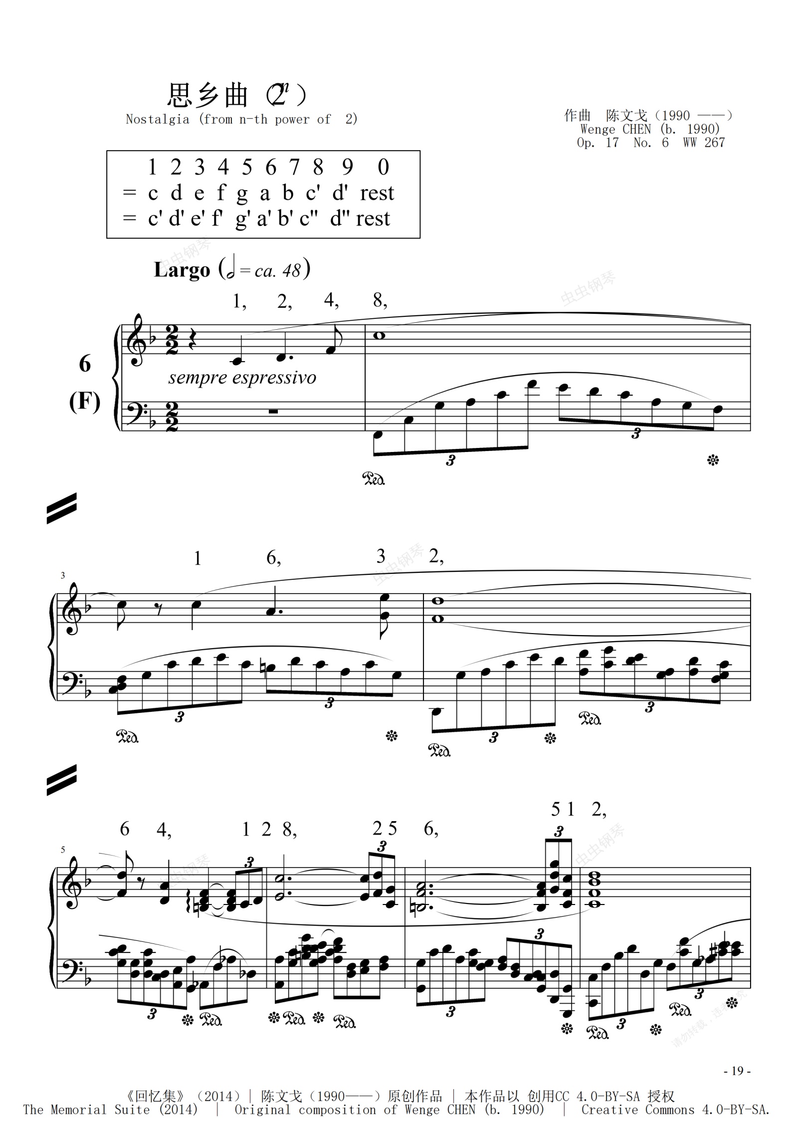 钢琴谱:思乡曲 - 陈文戈(选自《回忆集》)