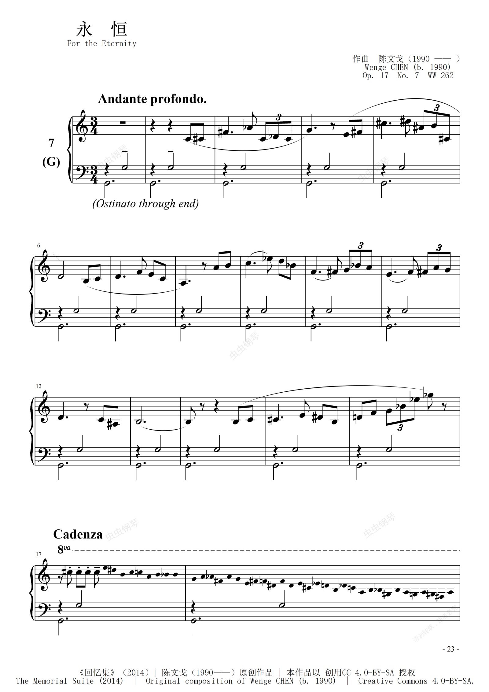 钢琴谱:永恒 - 陈文戈(选自《回忆集》)