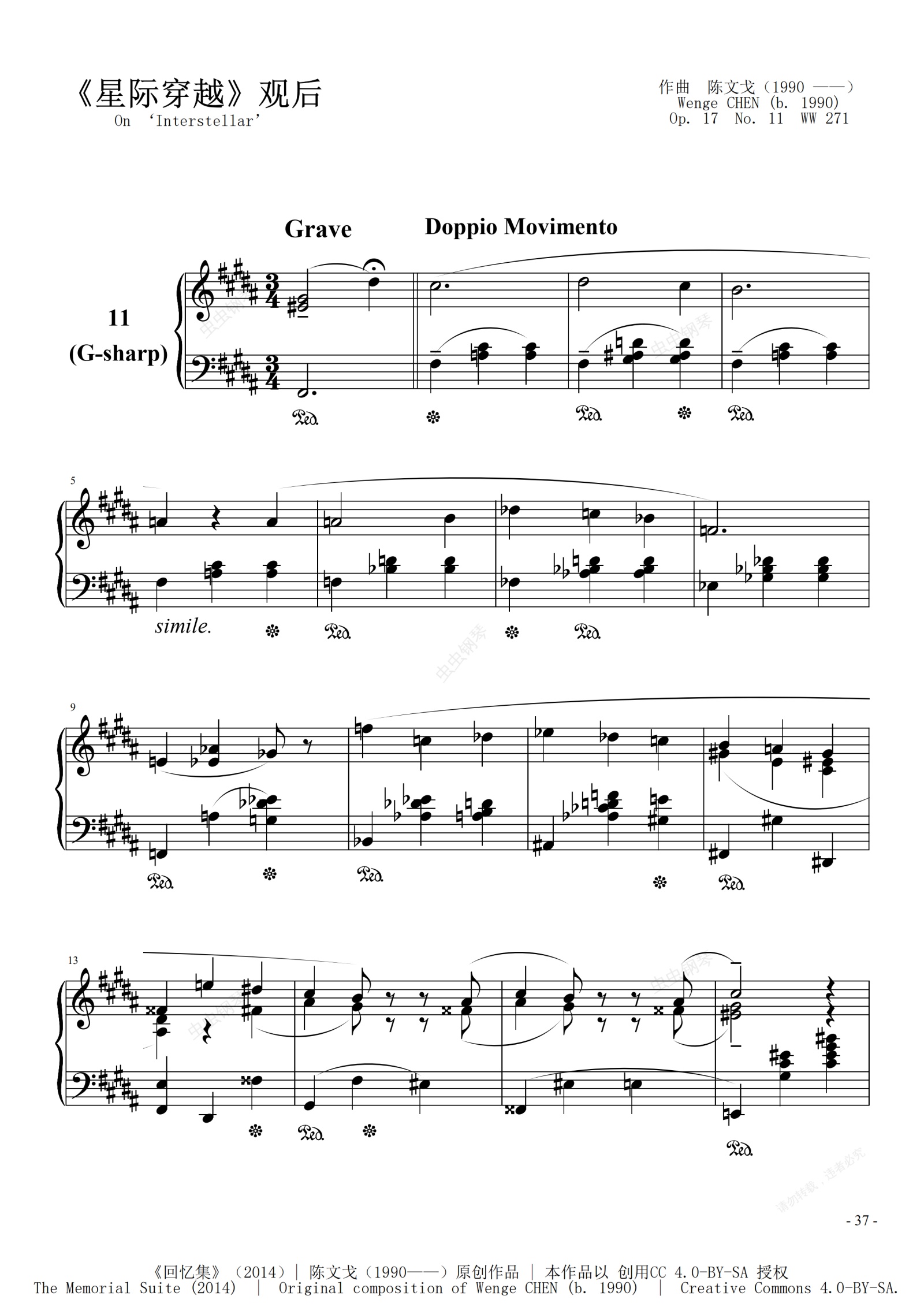 钢琴谱:《星际穿越》观后 - 陈文戈(选自《回忆集》)