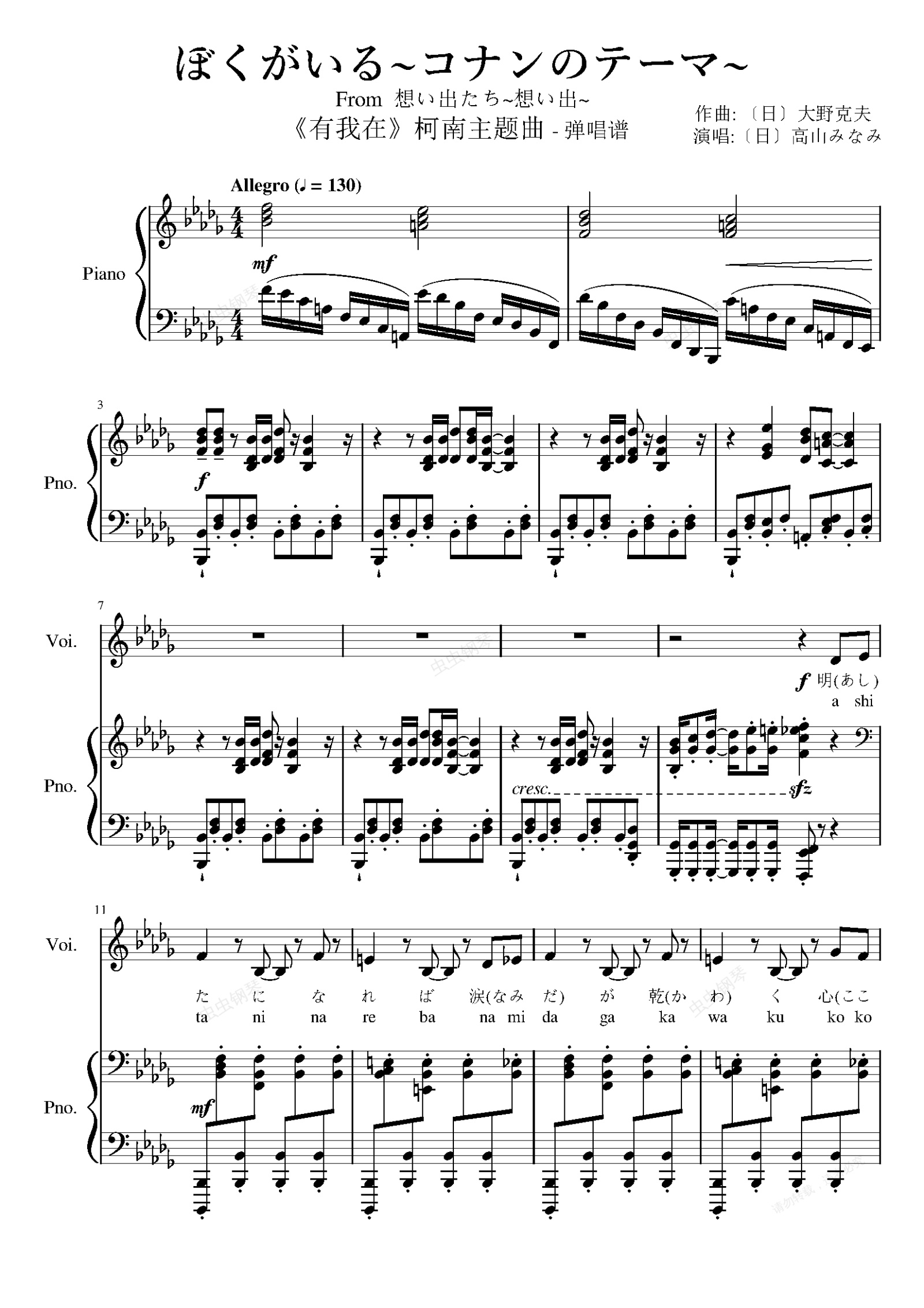 钢琴谱:柯南主题曲 - 有我在(ぼくがいる~コナンのテーマ~)弹唱谱