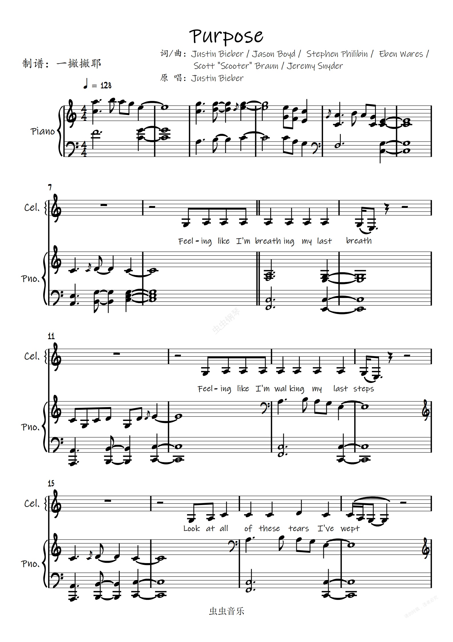 钢琴谱:Purpose【弹唱谱】Justin Bieber贾斯汀·比伯「一撇撇耶」