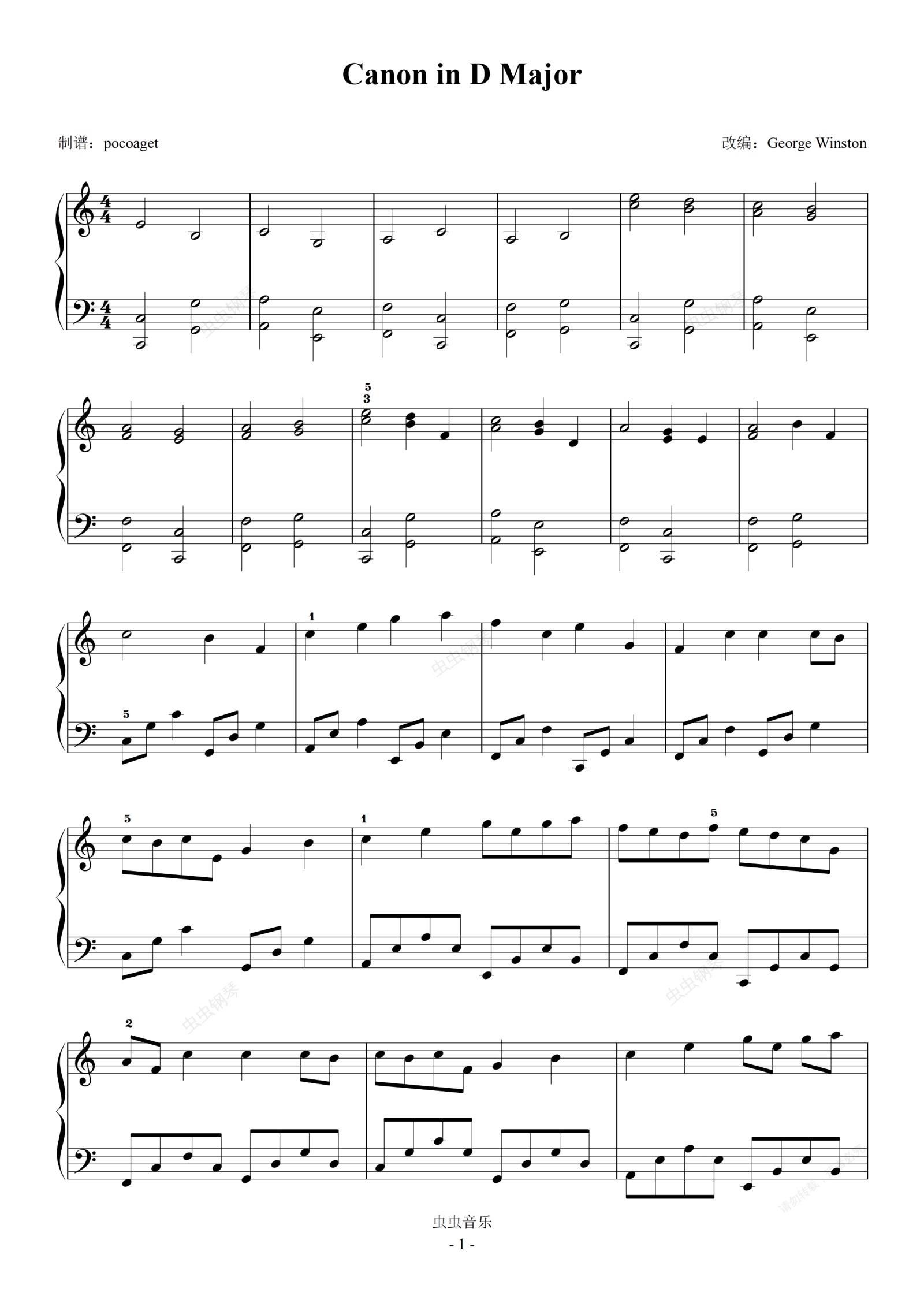 钢琴谱:卡农George Winston原版—根据原谱制谱(稍改,更易上手)