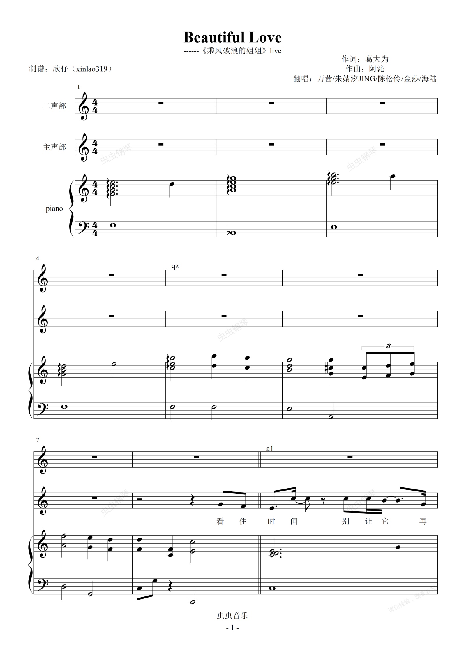钢琴谱:Beautiful love-精编弹唱版(乘风破浪的姐姐live)