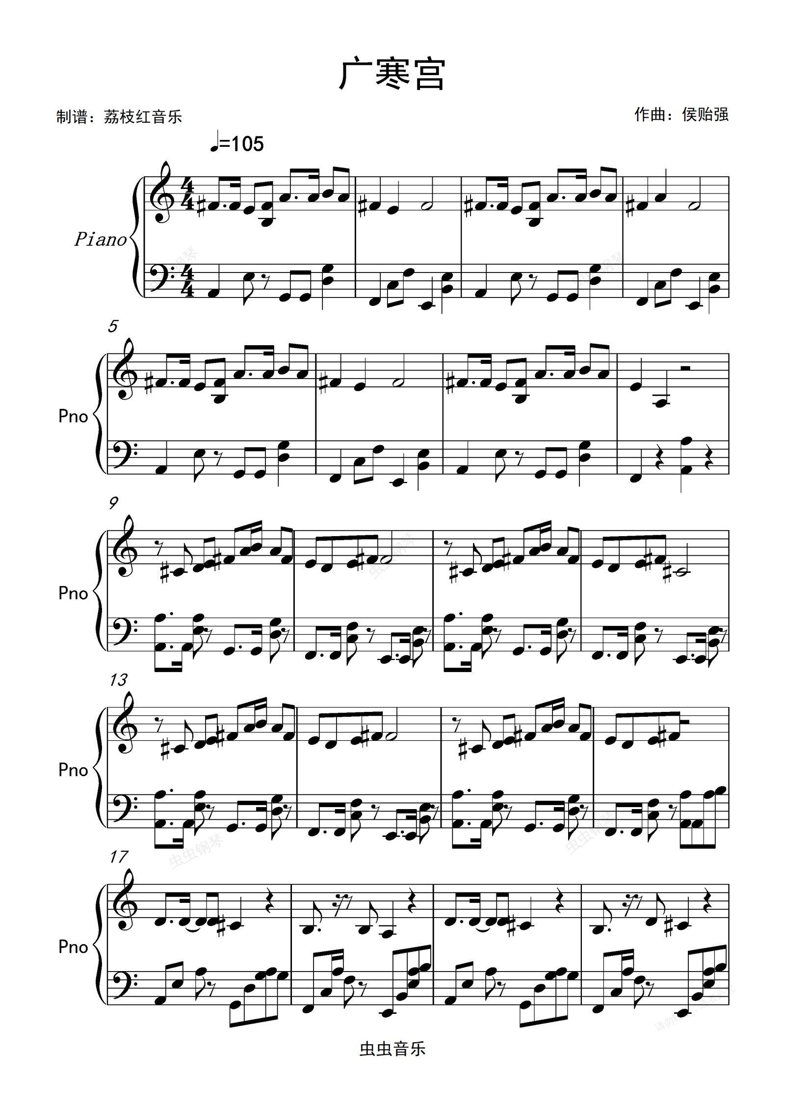钢琴谱:来了!来了!C调的 广寒宫 钢琴谱(丸子呦)独奏乐谱 高清乐谱+示范音频