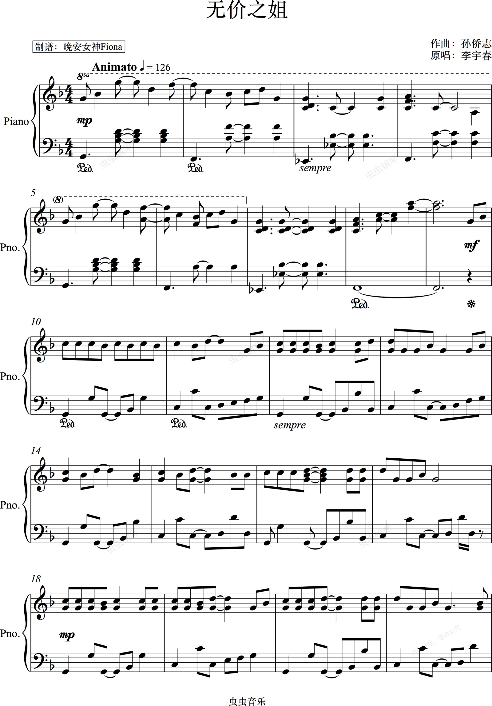 钢琴谱:【无价之姐】李宇春 (乘风破浪的姐姐主题歌)钢琴独奏版