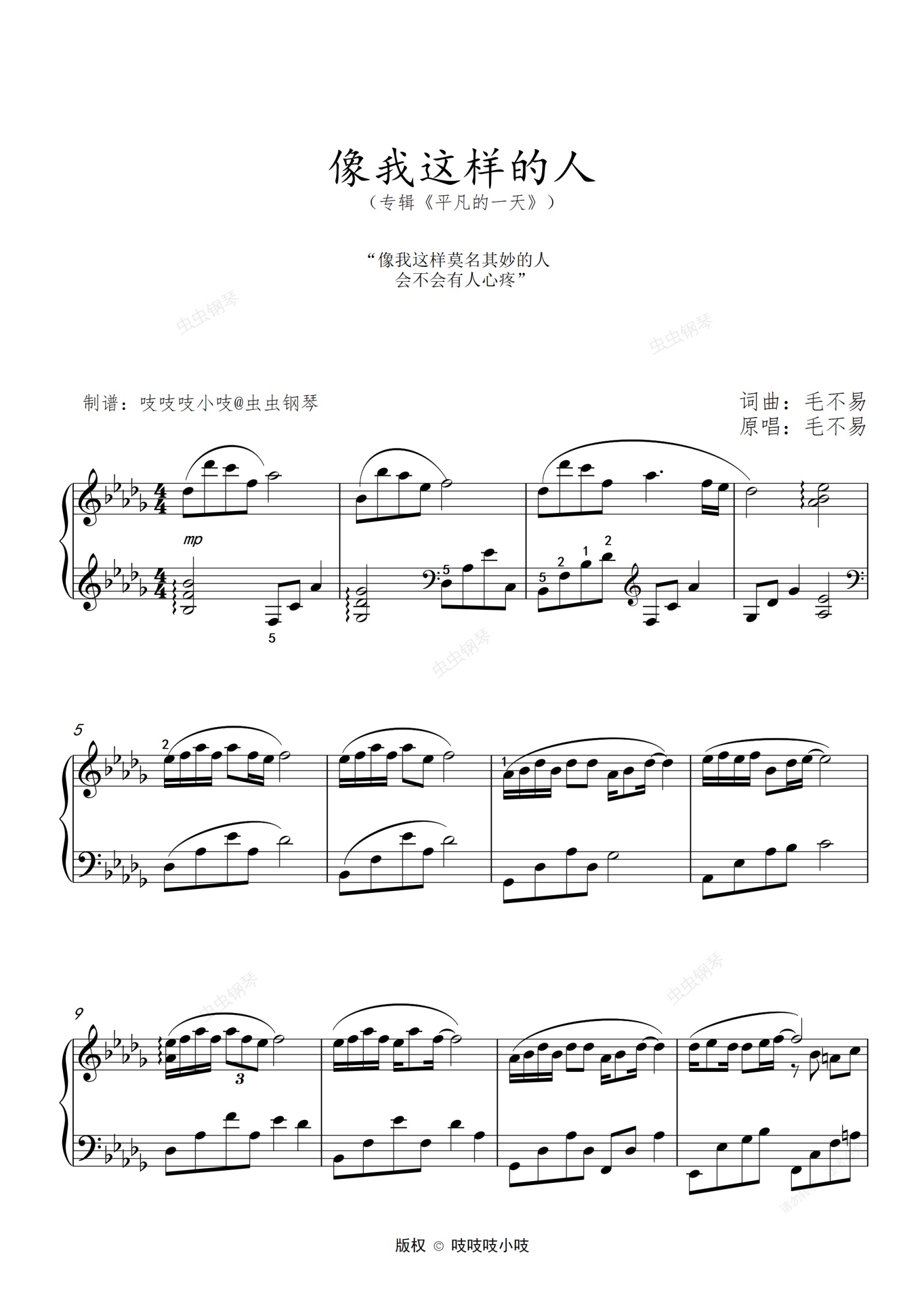 钢琴谱:像我这样的人 毛不易(专辑《平凡的一天》)
