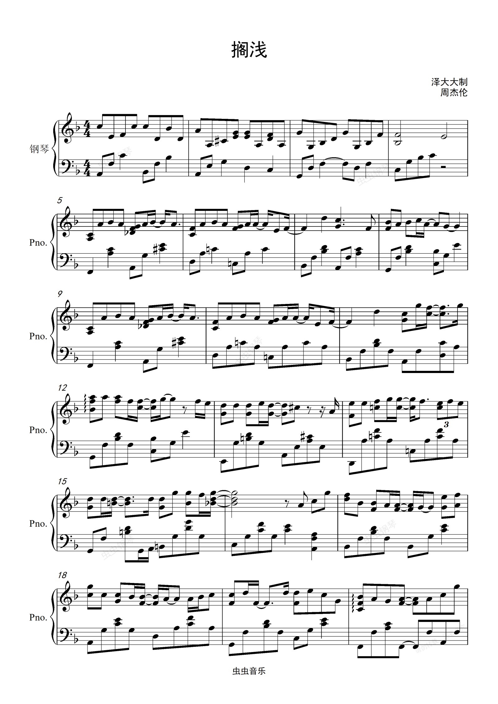 钢琴谱:搁浅【完美独奏版】