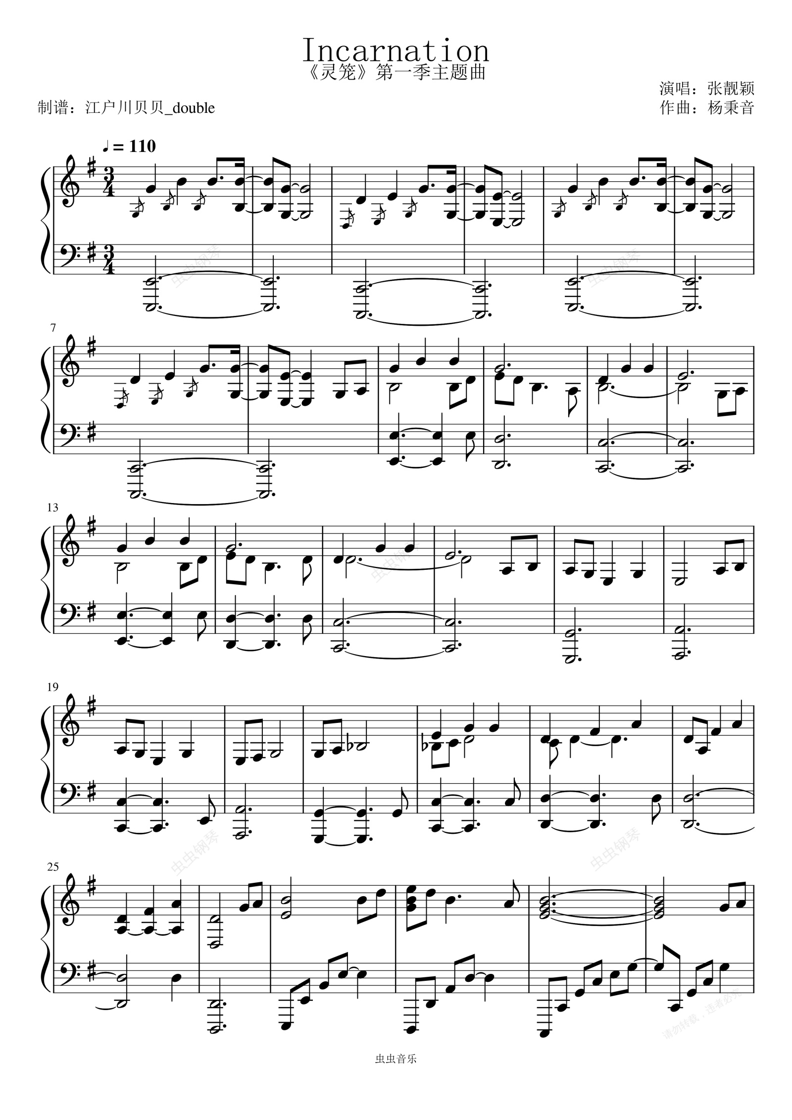 钢琴谱:【灵笼】Incarnation(张靓颖)
