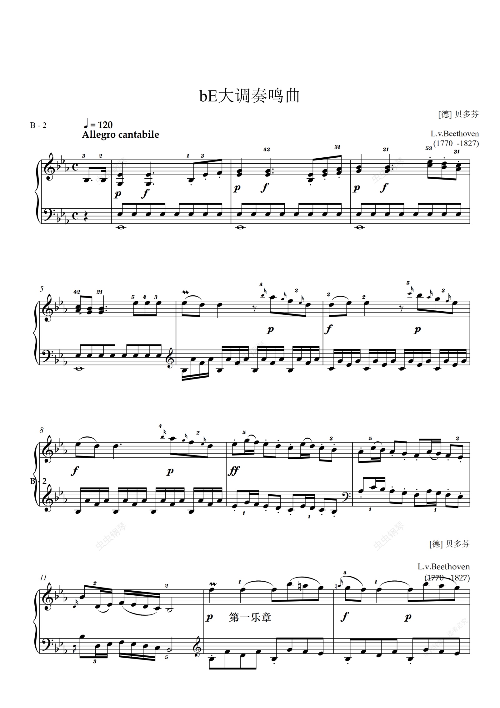 钢琴谱:【六级】B-2 降E大调奏鸣曲 [带指法](2019新版钢琴考级)